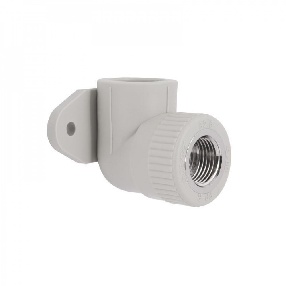 Кутник PPR Blue Ocean настінний з кріпленням 25х1/2", 90 ° ВР виконаний з високоякісного поліпропілену. Завдяки матеріалу виготовлення виріб стійкий до постійної робочої температури до 90 ° С. Кутник кріпиться за допомогою шурупів до будь-якої поверхні без особливих зусиль. з двома отворами. Діаметр підключення фітинга до поліпропіленової або армованої труби становить 25 мм, діаметр внутрішньої різьби - 1/2".