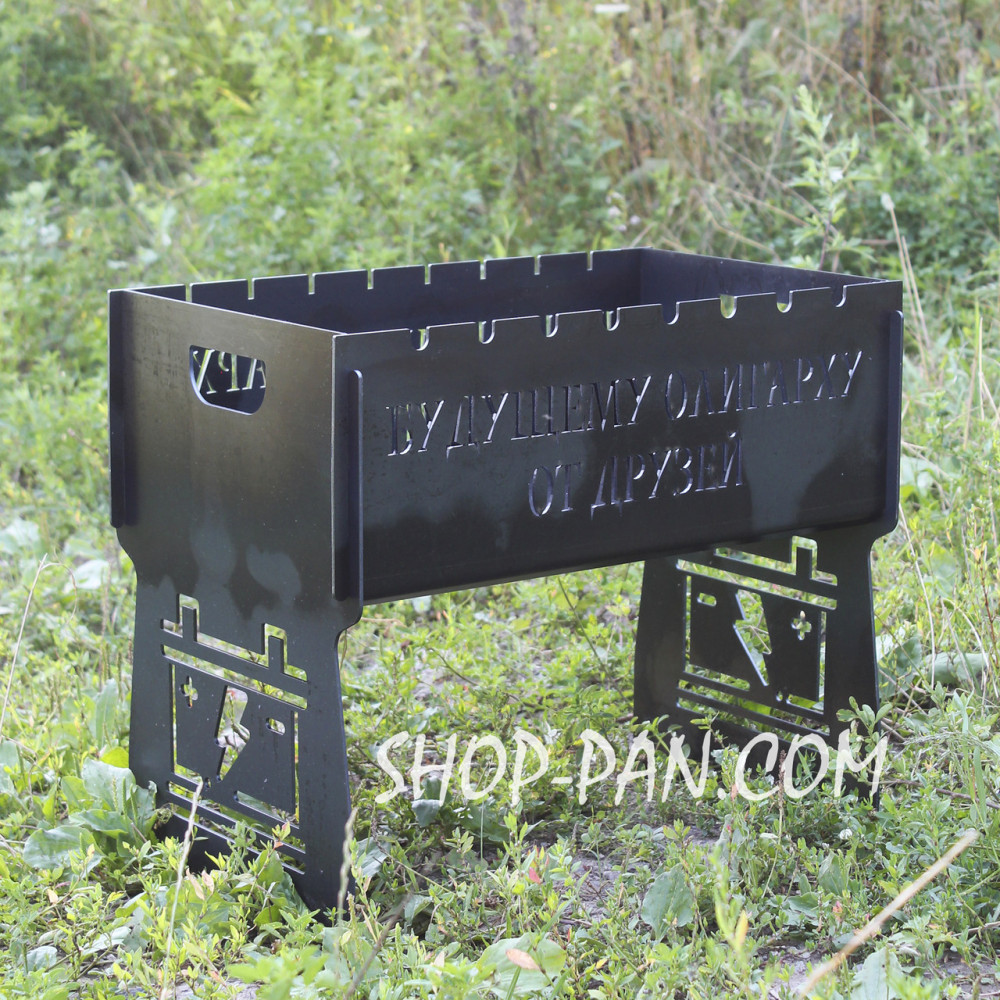 Мангал розбірний МАЙБУТНЬОГО ОЛІГАРХУ з індивідуальним гравіюванням - на подарунокМангал – чудовий подарунок прихильникам відпочинку на свіжому повітрі. А оригінальний іменний мангал, виготовлений за індивідуальним замовленням – це кращий спосіб вразити одного турботою та неординарним підходом до пошуку подарунків. Компактний мангал виготовлений з якісного металу, прослужити не одне десятиліття. Вигравіювати на ньому можна все що завгодно: ініціали власника, побажання, мотивуючі фрази або жартівливий підпис, якій оцінить ваш близький друг. Замовляйте іменний мангал у коробці з гравіюванням! Вартість створення складних зображень розраховується індивідуально. Великою зручністю є те, що в розібраному вигляді мангал можна переносити у чохлі як валізку. Купуючи подібний виріб наш клієнт отримує: · Високоякісний товар з нескінченним терміном використання. · Уважний підхід до створення шкірного виробу. · Розробка індивідуального дизайну мангалу. · Відображення на стінках будь-яких написів, символів. · Конструкція вирізається з міцного товстостінного металу. · Зберігає зовнішній вигляд і не деформується. · Повністю розбірний, займає мінімум місця. ???? Shop-Pan – ваш прямий постачальник туристичного спорядження та ексклюзивних аксесуарів для дому та відпочинку Пропонуємо широкий асортимент товарів для туризму, кемпінгу, риболовлі та пікніків – якісні вироби, перевірені часом та зібрані з любов'ю до деталей. ???? Широкий асортимент продукції У нашому каталозі представлені: ✅ Туристичні сковороди, турбо-пічки, котли, коптильні, ножі, рибальські сумки, ліхтарі та багато іншого ✅ Надійні товари для активного відпочинку, будинки та кухні – все для зручності та натхнення. ✅ Рішення для будь-якого стилю життя - від походів до домашнього затишку ✅ Збалансований вибір: еко-продукція з дерева, кухонні гравівальні дошки, фартухи з вашим принтом, монастирі, мангали, шампури, годинники та постери ✅ Аксесуари з можливістю персоналізації – зробіть свій подарунок унікальним ✅ Якість, естетика та турбота в кожному виробі – без прихованих недоліків та компромісів ???? Професійні консультації Менеджери проконсультують щодо вибору товарів. Працюємо: Пн-Пт 10:00 – 18:00, Сб 11:00 – 16:00. Зв'язок: Viber, Telegram, WhatsApp. ???? Швидка доставка по Україні ???? Замовлення, оформлені до 16:00, надсилаються того ж дня. ???? Доставка найпопулярнішими службами України ???? Бонуси та знижки за відгуки! ???? ???? Оцініть якість товару та ГАРАНТОВАНО отримайте знижку або безкоштовну доставку на замовлення! ???? Нам особливо цінні фото- та відеовідгуки. ???? Повідомте про свій відгук менеджеру в Telegram, WhatsApp або Viber (на вибір) - і гарантовано отримайте приємний бонус! ???? Знайдіть нас у Google - "Shop-Pan" і ознайомтеся зі _______________________________ Чому обирають нас? ???? ✅ Якість, якій можна довіряти Практичні товари для дому, подорожей та активного відпочинку ✅ Зважений підхід, чесність та контроль якості на кожному етапі виготовлення ???? Від ексклюзивних сувенірів до туристичного спорядження – все для ваших цілей та подарунків ✅ Замовлення 24/7 - просто та швидко! ???? Наш сайт працює 24/7 ???? Менеджер відповість у месенджерах у зручний для вас час. ✅ Швидка доставка по Україні ???? Працюємо по всій Україні! ???? Розрахуємо вартість та підберемо зручний спосіб оплати. Отримайте посилку швидко та без клопоту. ________________________
