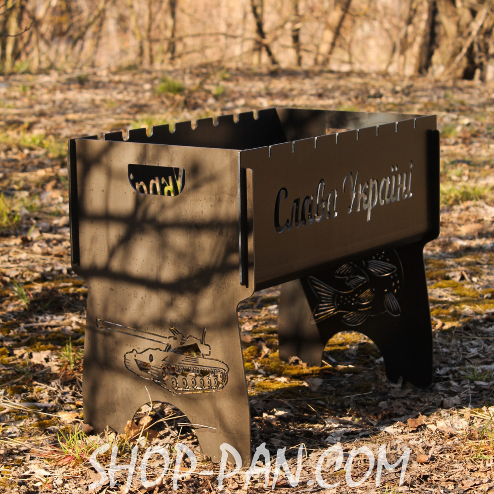 Мангал розбірний з індивідуальним гравіюванням Слава Україні - на подарунокМангал – чудовий подарунок прихильникам відпочинку на свіжому повітрі. А оригінальний іменний мангал, виготовлений за індивідуальним замовленням – це кращий спосіб вразити одного турботою та неординарним підходом до пошуку подарунків. Компактний мангал виготовлений з якісного металу, прослужити не одне десятиліття. Вигравіювати на ньому можна все що завгодно: ініціали власника, побажання, мотивуючі фрази або жартівливий підпис, якій оцінить ваш близький друг. Замовляйте іменний мангал у коробці з гравіюванням! Вартість створення складних зображень розраховується індивідуально. Великою зручністю є те, що в розібраному вигляді мангал можна переносити у чохлі як валізку. Купуючи подібний виріб наш клієнт отримує: · Високоякісний товар з нескінченним терміном використання. · Уважний підхід до створення шкірного виробу. · Розробка індивідуального дизайну мангалу. · Відображення на стінках будь-яких написів, символів. · Конструкція вирізається з міцного товстостінного металу. · Зберігає зовнішній вигляд і не деформується. · Повністю розбірний, займає мінімум місця. ???? Shop-Pan – ваш прямий постачальник туристичного спорядження та ексклюзивних аксесуарів для дому та відпочинку Пропонуємо широкий асортимент товарів для туризму, кемпінгу, риболовлі та пікніків – якісні вироби, перевірені часом та зібрані з любов'ю до деталей. ???? Широкий асортимент продукції У нашому каталозі представлені: ✅ Туристичні сковороди, турбо-пічки, котли, коптильні, ножі, рибальські сумки, ліхтарі та багато іншого ✅ Надійні товари для активного відпочинку, будинки та кухні – все для зручності та натхнення. ✅ Рішення для будь-якого стилю життя - від походів до домашнього затишку ✅ Збалансований вибір: еко-продукція з дерева, кухонні гравівальні дошки, фартухи з вашим принтом, монастирі, мангали, шампури, годинники та постери ✅ Аксесуари з можливістю персоналізації – зробіть свій подарунок унікальним ✅ Якість, естетика та турбота в кожному виробі – без прихованих недоліків та компромісів ???? Професійні консультації Менеджери проконсультують щодо вибору товарів. Працюємо: Пн-Пт 10:00 – 18:00, Сб 11:00 – 16:00. Зв'язок: Viber, Telegram, WhatsApp. ???? Швидка доставка по Україні ???? Замовлення, оформлені до 16:00, надсилаються того ж дня. ???? Доставка найпопулярнішими службами України ???? Бонуси та знижки за відгуки! ???? ???? Оцініть якість товару та ГАРАНТОВАНО отримайте знижку або безкоштовну доставку на замовлення! ???? Нам особливо цінні фото- та відеовідгуки. ???? Повідомте про свій відгук менеджеру в Telegram, WhatsApp або Viber (на вибір) - і гарантовано отримайте приємний бонус! ???? Знайдіть нас у Google - "Shop-Pan" і ознайомтеся зі _______________________________ Чому обирають нас? ???? ✅ Якість, якій можна довіряти Практичні товари для дому, подорожей та активного відпочинку ✅ Зважений підхід, чесність та контроль якості на кожному етапі виготовлення ???? Від ексклюзивних сувенірів до туристичного спорядження – все для ваших цілей та подарунків ✅ Замовлення 24/7 - просто та швидко! ???? Наш сайт працює 24/7 ???? Менеджер відповість у месенджерах у зручний для вас час. ✅ Швидка доставка по Україні ???? Працюємо по всій Україні! ???? Розрахуємо вартість та підберемо зручний спосіб оплати. Отримайте посилку швидко та без клопоту. _______________________________ Як 