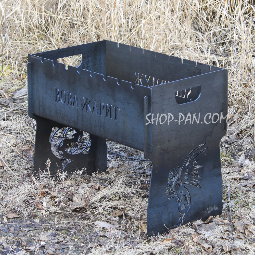 Мангал розбірний з індивідуальним гравіюванням - Вова смажитьМангал – чудовий подарунок прихильникам відпочинку на свіжому повітрі. А оригінальний іменний мангал, виготовлений за індивідуальним замовленням – це кращий спосіб вразити одного турботою та неординарним підходом до пошуку подарунків. Компактний мангал виготовлений з якісного металу, прослужити не одне десятиліття. Вигравіювати на ньому можна все що завгодно: ініціали власника, побажання, мотивуючі фрази або жартівливий підпис, якій оцінить ваш близький друг. Замовляйте іменний мангал у коробці з гравіюванням! Вартість створення складних зображень розраховується індивідуально. Великою зручністю є те, що в розібраному вигляді мангал можна переносити у чохлі як валізку. Купуючи подібний виріб наш клієнт отримує: Високоякісний товар з нескінченним терміном використання. Уважний підхід до створення шкірного виробу. Розробка індивідуального дизайну мангалу. Відображення на стінках будь-яких написів, символів. Конструкція вирізається з міцного товстостінного металу. Зберігає зовнішній вигляд і не деформується. Повністю розбірний, займає мінімум місця. ???? Shop-Pan – ваш прямий постачальник туристичного спорядження та ексклюзивних аксесуарів для дому та відпочинку Пропонуємо широкий асортимент товарів для туризму, кемпінгу, риболовлі та пікніків – якісні вироби, перевірені часом та зібрані з любов'ю до деталей. ???? Широкий асортимент продукції У нашому каталозі представлені: ✅ Туристичні сковороди, турбо-пічки, котли, коптильні, ножі, рибальські сумки, ліхтарі та багато іншого ✅ Надійні товари для активного відпочинку, будинки та кухні – все для зручності та натхнення. ✅ Рішення для будь-якого стилю життя - від походів до домашнього затишку ✅ Збалансований вибір: еко-продукція з дерева, кухонні гравівальні дошки, фартухи з вашим принтом, монастирі, мангали, шампури, годинники та постери ✅ Аксесуари з можливістю персоналізації – зробіть свій подарунок унікальним ✅ Якість, естетика та турбота в кожному виробі – без прихованих недоліків та компромісів ???? Професійні консультації Менеджери проконсультують щодо вибору товарів. Працюємо: Пн-Пт 10:00 – 18:00, Сб 11:00 – 16:00. Зв'язок: Viber, Telegram, WhatsApp. ???? Швидка доставка по Україні ???? Замовлення, оформлені до 16:00, надсилаються того ж дня. ???? Доставка найпопулярнішими службами України ???? Бонуси та знижки за відгуки! ???? ???? Оцініть якість товару та ГАРАНТОВАНО отримайте знижку або безкоштовну доставку на замовлення! ???? Нам особливо цінні фото- та відеовідгуки. ???? Повідомте про свій відгук менеджеру в Telegram, WhatsApp або Viber (на вибір) - і гарантовано отримайте приємний бонус! ???? Знайдіть нас у Google - "Shop-Pan" і ознайомтеся зі _______________________________ Чому обирають нас? ???? ✅ Якість, якій можна довіряти Практичні товари для дому, подорожей та активного відпочинку ✅ Зважений підхід, чесність та контроль якості на кожному етапі виготовлення ???? Від ексклюзивних сувенірів до туристичного спорядження – все для ваших цілей та подарунків ✅ Замовлення 24/7 - просто та швидко! ???? Наш сайт працює 24/7 ???? Менеджер відповість у месенджерах у зручний для вас час. ✅ Швидка доставка по Україні ???? Працюємо по всій Україні! ???? Розрахуємо вартість та підберемо зручний спосіб оплати. Отримайте посилку швидко та без клопоту. _______________________________ Як замовити? Простий алгорит