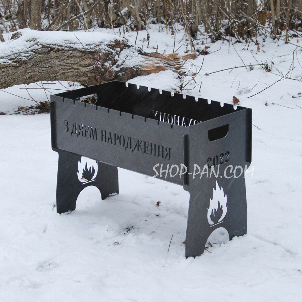 Мангал розбірний з індивідуальним гравіюванням - З днем народження 2022Мангал – чудовий подарунок прихильникам відпочинку на свіжому повітрі. А оригінальний іменний мангал, виготовлений за індивідуальним замовленням – це кращий спосіб вразити одного турботою та неординарним підходом до пошуку подарунків. Компактний мангал виготовлений з якісного металу, прослужить не одне десятиліття. Вигравіювати на ньому можна все що завгодно: ініціали власника, побажання, мотивуючі фрази або жартівливий підпис, якій оцінить ваш близький друг. Замовляйте іменний мангал у коробці с гравіюванням! Вартість створення складних зображень розраховується індивідуально. Великою зручністю є те, що в розібраному вигляді мангал можна переносити в чохлі як чемоданчик. Купуючи подібний виріб наш клієнт отримує: Високоякісний товар з нескінченним терміном використання. Уважний підхід до створення кожного виробу. Розробка індивідуального дизайну мангала. Відображення на стінках будь-яких написів, символів. Конструкція вирізається з міцного товстостінного металу. Зберігає зовнішній вигляд і не деформується. Повністю розбірний, займає мінімум місця. ???? Shop-Pan – ваш прямий постачальник туристичного спорядження та ексклюзивних аксесуарів для дому та відпочинку Пропонуємо широкий асортимент товарів для туризму, кемпінгу, риболовлі та пікніків – якісні вироби, перевірені часом та зібрані з любов'ю до деталей. ???? Широкий асортимент продукції У нашому каталозі представлені: ✅ Туристичні сковороди, турбо-пічки, котли, коптильні, ножі, рибальські сумки, ліхтарі та багато іншого ✅ Надійні товари для активного відпочинку, будинки та кухні – все для зручності та натхнення. ✅ Рішення для будь-якого стилю життя - від походів до домашнього затишку ✅ Збалансований вибір: еко-продукція з дерева, кухонні гравівальні дошки, фартухи з вашим принтом, монастирі, мангали, шампури, годинники та постери ✅ Аксесуари з можливістю персоналізації – зробіть свій подарунок унікальним ✅ Якість, естетика та турбота в кожному виробі – без прихованих недоліків та компромісів ???? Професійні консультації Менеджери проконсультують щодо вибору товарів. Працюємо: Пн-Пт 10:00 – 18:00, Сб 11:00 – 16:00. Зв'язок: Viber, Telegram, WhatsApp. ???? Швидка доставка по Україні ???? Замовлення, оформлені до 16:00, надсилаються того ж дня. ???? Доставка найпопулярнішими службами України ???? Бонуси та знижки за відгуки! ???? ???? Оцініть якість товару та ГАРАНТОВАНО отримайте знижку або безкоштовну доставку на замовлення! ???? Нам особливо цінні фото- та відеовідгуки. ???? Повідомте про свій відгук менеджеру в Telegram, WhatsApp або Viber (на вибір) - і гарантовано отримайте приємний бонус! ???? Знайдіть нас у Google - "Shop-Pan" і ознайомтеся зі _______________________________ Чому обирають нас? ???? ✅ Якість, якій можна довіряти Практичні товари для дому, подорожей та активного відпочинку ✅ Зважений підхід, чесність та контроль якості на кожному етапі виготовлення ???? Від ексклюзивних сувенірів до туристичного спорядження – все для ваших цілей та подарунків ✅ Замовлення 24/7 - просто та швидко! ???? Наш сайт працює 24/7 ???? Менеджер відповість у месенджерах у зручний для вас час. ✅ Швидка доставка по Україні ???? Працюємо по всій Україні! ???? Розрахуємо вартість та підберемо зручний спосіб оплати. Отримайте посилку швидко та без клопоту. _______________________________ Як замовити? Прости