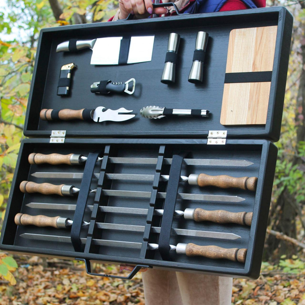 Набір для гриля та барбекю "Традиційний" у дерев'яному кейсіПодарунковий набір для гриля – це комплект для пікніка та відпочинку на природі. Прибори та шампури продаються в естетичному дерев'яному кейсі, в ньому зручно зберігати та транспортувати набір. У набір входять: 6 шт шампурів Виделка для зняття м’яса Щипці для гриля Дерев’яна кухонна дошка Ніж-сокира Відкривачка-штопор Запальничка для розпалювання вогню Посуд для спецій 2 шт Розмір дерев'яного кейсу: 69х29х11.5 см. Кейс із металевою ручкою. Розмір шампура: довжина – 63 см; завтовшки 3 мм. Шампури універсальні, підходять для приготування шашлику, а також морепродуктів та овочів на мангалі будь-якого типу. Відмінність відтінків кольорів фарб з різних партій може відрізнятися і містити неточності. Виробник залишає за собою право вносити зміни в технічні характеристики виробу. ???? Shop-Pan – ваш прямий постачальник туристичного спорядження та ексклюзивних аксесуарів для дому та відпочинку Пропонуємо широкий асортимент товарів для туризму, кемпінгу, риболовлі та пікніків – якісні вироби, перевірені часом та зібрані з любов'ю до деталей. ???? Широкий асортимент продукції У нашому каталозі представлені: ✅ Туристичні сковороди, турбо-пічки, котли, коптильні, ножі, рибальські сумки, ліхтарі та багато іншого ✅ Надійні товари для активного відпочинку, будинки та кухні – все для зручності та натхнення. ✅ Рішення для будь-якого стилю життя - від походів до домашнього затишку ✅ Збалансований вибір: еко-продукція з дерева, кухонні гравівальні дошки, фартухи з вашим принтом, монастирі, мангали, шампури, годинники та постери ✅ Аксесуари з можливістю персоналізації – зробіть свій подарунок унікальним ✅ Якість, естетика та турбота в кожному виробі – без прихованих недоліків та компромісів ???? Професійні консультації Менеджери проконсультують щодо вибору товарів. Працюємо: Пн-Пт 10:00 – 18:00, Сб 11:00 – 16:00. Зв'язок: Viber, Telegram, WhatsApp. ???? Швидка доставка по Україні ???? Замовлення, оформлені до 16:00, надсилаються того ж дня. ???? Доставка найпопулярнішими службами України ???? Бонуси та знижки за відгуки! ???? ???? Оцініть якість товару та ГАРАНТОВАНО отримайте знижку або безкоштовну доставку на замовлення! ???? Нам особливо цінні фото- та відеовідгуки. ???? Повідомте про свій відгук менеджеру в Telegram, WhatsApp або Viber (на вибір) - і гарантовано отримайте приємний бонус! ???? Знайдіть нас у Google - "Shop-Pan" і ознайомтеся зі _______________________________ Чому обирають нас? ???? ✅ Якість, якій можна довіряти Практичні товари для дому, подорожей та активного відпочинку ✅ Зважений підхід, чесність та контроль якості на кожному етапі виготовлення ???? Від ексклюзивних сувенірів до туристичного спорядження – все для ваших цілей та подарунків ✅ Замовлення 24/7 - просто та швидко! ???? Наш сайт працює 24/7 ???? Менеджер відповість у месенджерах у зручний для вас час. ✅ Швидка доставка по Україні ???? Працюємо по всій Україні! ???? Розрахуємо вартість та підберемо зручний спосіб оплати. Отримайте посилку швидко та без клопоту. _______________________________ Як замовити? Простий алгоритм покупки: ✔ Оформіть замовлення через кошик або у месенджерах ✔ Ми зв'яжемося з вами для уточнення деталей ✔ Відправимо після оплати або післяплатою ✔ Отримайте замовлення у найближчому відділенні ???? "Shop-Pan" - Магазин, якому довіряють тисячі клієнтів, які цінують якість та оригінальність! ????Ми цін