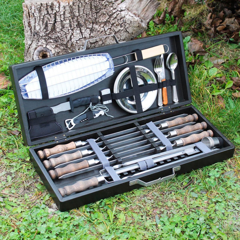 Набір для гриля та барбекю у дерев'яному кейсі "Буковина"Подарунковий набір для гриля – це комплект для пікніка та відпочинку на природі, де є всі необхідні столові прибори на 6 осіб. Прибори та шампури продаються в естетичному дерев'яному кейсі, в ньому зручно зберігати та транспортувати набір. У набір входять: 6 виделок; 6 ложок; 1 ніж; 6 тарілок; 6 чарок; 6 шампурів з дерев’яною ручкою; шампур подвійний; штопор + відкривачка для пляшок; запальничка; решітка для риби; соку; мангал рамка з нержавійки; Розмір дерев'яного кейсу: 69х29х11.5 см. Кейс із металевою ручкою. Розмір шампура: довжина – 63 см; завтовшки 3 мм. Шампури універсальні, підходять для приготування шашлику, а також морепродуктів та овочів на мангалі будь-якого типу. Відмінність відтінків кольорів фарб з різних партій може відрізнятися і містити неточності. Виробник залишає за собою право вносити зміни в технічні характеристики виробу. ???? Shop-Pan – ваш прямий постачальник туристичного спорядження та ексклюзивних аксесуарів для дому та відпочинку Пропонуємо широкий асортимент товарів для туризму, кемпінгу, риболовлі та пікніків – якісні вироби, перевірені часом та зібрані з любов'ю до деталей. ???? Широкий асортимент продукції У нашому каталозі представлені: ✅ Туристичні сковороди, турбо-пічки, котли, коптильні, ножі, рибальські сумки, ліхтарі та багато іншого ✅ Надійні товари для активного відпочинку, будинки та кухні – все для зручності та натхнення. ✅ Рішення для будь-якого стилю життя - від походів до домашнього затишку ✅ Збалансований вибір: еко-продукція з дерева, кухонні гравівальні дошки, фартухи з вашим принтом, монастирі, мангали, шампури, годинники та постери ✅ Аксесуари з можливістю персоналізації – зробіть свій подарунок унікальним ✅ Якість, естетика та турбота в кожному виробі – без прихованих недоліків та компромісів ???? Професійні консультації Менеджери проконсультують щодо вибору товарів. Працюємо: Пн-Пт 10:00 – 18:00, Сб 11:00 – 16:00. Зв'язок: Viber, Telegram, WhatsApp. ???? Швидка доставка по Україні ???? Замовлення, оформлені до 16:00, надсилаються того ж дня. ???? Доставка найпопулярнішими службами України ???? Бонуси та знижки за відгуки! ???? ???? Оцініть якість товару та ГАРАНТОВАНО отримайте знижку або безкоштовну доставку на замовлення! ???? Нам особливо цінні фото- та відеовідгуки. ???? Повідомте про свій відгук менеджеру в Telegram, WhatsApp або Viber (на вибір) - і гарантовано отримайте приємний бонус! ???? Знайдіть нас у Google - "Shop-Pan" і ознайомтеся зі _______________________________ Чому обирають нас? ???? ✅ Якість, якій можна довіряти Практичні товари для дому, подорожей та активного відпочинку ✅ Зважений підхід, чесність та контроль якості на кожному етапі виготовлення ???? Від ексклюзивних сувенірів до туристичного спорядження – все для ваших цілей та подарунків ✅ Замовлення 24/7 - просто та швидко! ???? Наш сайт працює 24/7 ???? Менеджер відповість у месенджерах у зручний для вас час. ✅ Швидка доставка по Україні ???? Працюємо по всій Україні! ???? Розрахуємо вартість та підберемо зручний спосіб оплати. Отримайте посилку швидко та без клопоту. _______________________________ Як замовити? Простий алгоритм покупки: ✔ Оформіть замовлення через кошик або у месенджерах ✔ Ми зв'яжемося з вами для уточнення деталей ✔ Відправимо після оплати або післяплатою ✔ Отримайте замовлення у найближчому відділенні ???? "Shop-Pan" - Магазин, якому довіряють тися