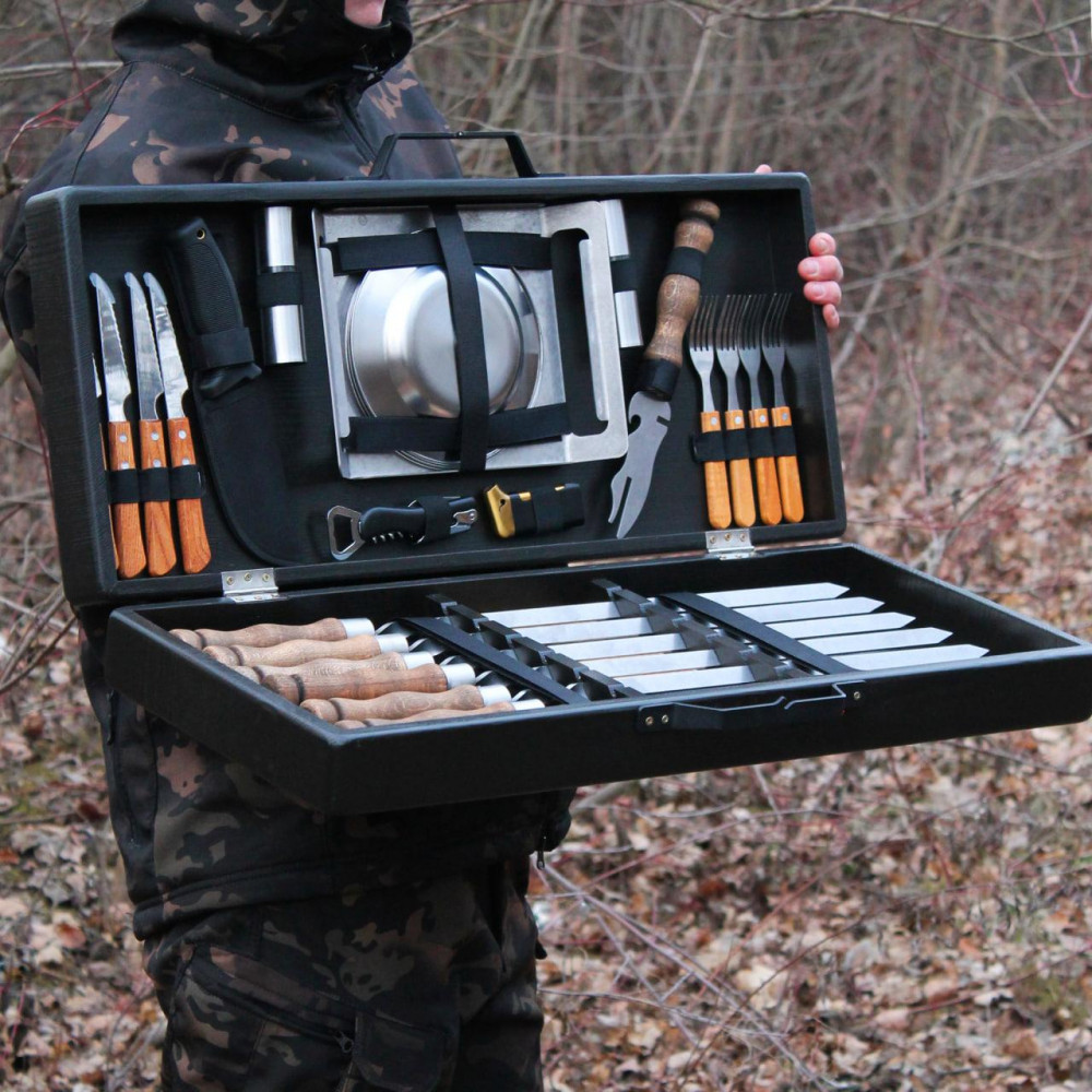 Набір для гриля та барбекю "Застільний" у дерев'яному кейсіПодарунковий набір для гриля – це комплект для пікніка та відпочинку на природі. Прибори та шампури продаються в естетичному дерев'яному кейсі, в ньому зручно зберігати та транспортувати набір. У набір входять: Шампури (6 штук) Тарілки (4 штук) Бiлки (4 штук) Ніж (4 штук) Запальничка Виделка для зняття м'яса Відкривачка-штопор Кухонна дошка Посуд для спецій (2 шт) Тактичний ніж Піднос з нержавійки Розмір дерев'яного кейсу: 69х29х11.5 см. Кейс із металевою ручкою. Розмір шампура: довжина – 63 см; завтовшки 3 мм. Шампури універсальні, підходять для приготування шашлику, а також морепродуктів та овочів на мангалі будь-якого типу. Відмінність відтінків кольорів фарб з різних партій може відрізнятися і містити неточності. Виробник залишає за собою право вносити зміни в технічні характеристики виробу. ???? Shop-Pan – ваш прямий постачальник туристичного спорядження та ексклюзивних аксесуарів для дому та відпочинку Пропонуємо широкий асортимент товарів для туризму, кемпінгу, риболовлі та пікніків – якісні вироби, перевірені часом та зібрані з любов'ю до деталей. ???? Широкий асортимент продукції У нашому каталозі представлені: ✅ Туристичні сковороди, турбо-пічки, котли, коптильні, ножі, рибальські сумки, ліхтарі та багато іншого ✅ Надійні товари для активного відпочинку, будинки та кухні – все для зручності та натхнення. ✅ Рішення для будь-якого стилю життя - від походів до домашнього затишку ✅ Збалансований вибір: еко-продукція з дерева, кухонні гравівальні дошки, фартухи з вашим принтом, монастирі, мангали, шампури, годинники та постери ✅ Аксесуари з можливістю персоналізації – зробіть свій подарунок унікальним ✅ Якість, естетика та турбота в кожному виробі – без прихованих недоліків та компромісів ???? Професійні консультації Менеджери проконсультують щодо вибору товарів. Працюємо: Пн-Пт 10:00 – 18:00, Сб 11:00 – 16:00. Зв'язок: Viber, Telegram, WhatsApp. ???? Швидка доставка по Україні ???? Замовлення, оформлені до 16:00, надсилаються того ж дня. ???? Доставка найпопулярнішими службами України ???? Бонуси та знижки за відгуки! ???? ???? Оцініть якість товару та ГАРАНТОВАНО отримайте знижку або безкоштовну доставку на замовлення! ???? Нам особливо цінні фото- та відеовідгуки. ???? Повідомте про свій відгук менеджеру в Telegram, WhatsApp або Viber (на вибір) - і гарантовано отримайте приємний бонус! ???? Знайдіть нас у Google - "Shop-Pan" і ознайомтеся зі _______________________________ Чому обирають нас? ???? ✅ Якість, якій можна довіряти Практичні товари для дому, подорожей та активного відпочинку ✅ Зважений підхід, чесність та контроль якості на кожному етапі виготовлення ???? Від ексклюзивних сувенірів до туристичного спорядження – все для ваших цілей та подарунків ✅ Замовлення 24/7 - просто та швидко! ???? Наш сайт працює 24/7 ???? Менеджер відповість у месенджерах у зручний для вас час. ✅ Швидка доставка по Україні ???? Працюємо по всій Україні! ???? Розрахуємо вартість та підберемо зручний спосіб оплати. Отримайте посилку швидко та без клопоту. _______________________________ Як замовити? Простий алгоритм покупки: ✔ Оформіть замовлення через кошик або у месенджерах ✔ Ми зв'яжемося з вами для уточнення деталей ✔ Відправимо після оплати або післяплатою ✔ Отримайте замовлення у найближчому відділенні ???? "Shop-Pan" - Магазин, якому довіряють тисячі клієнтів, які цінують якість та оригінальн