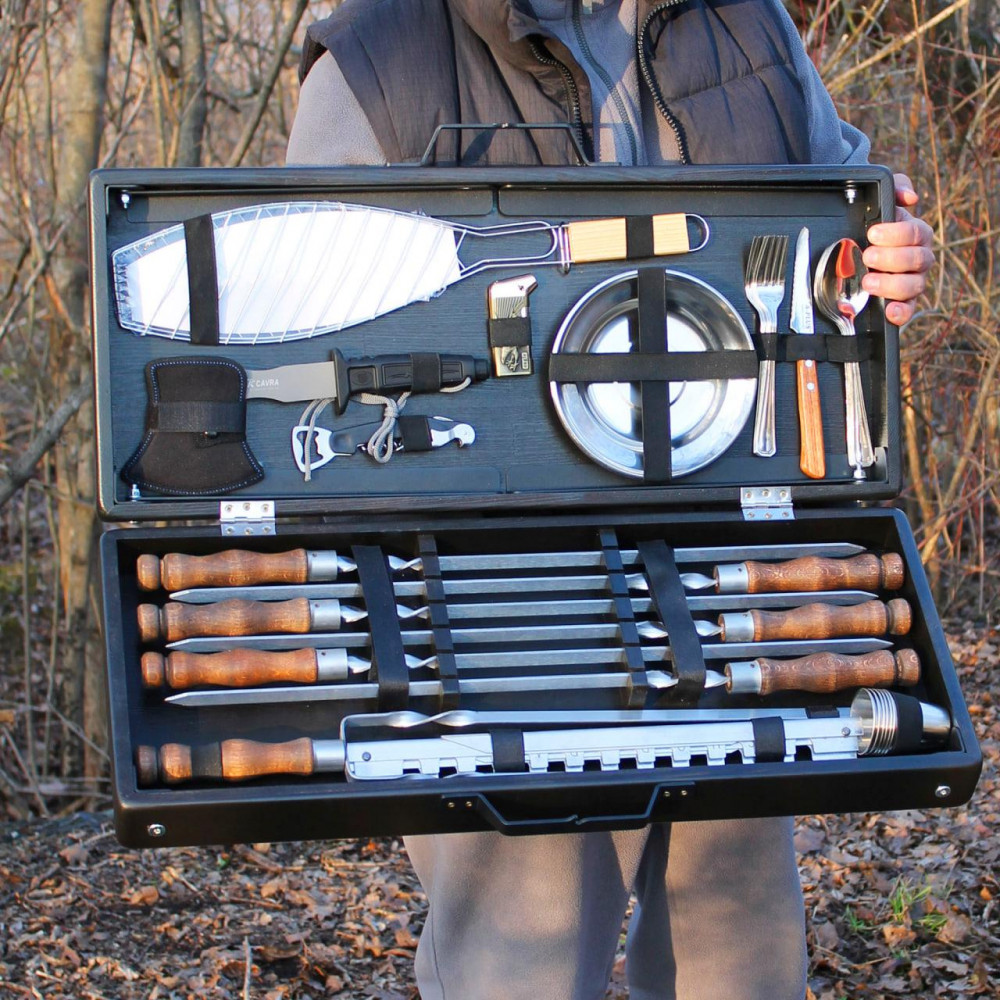 Набір шампурів в дерев'яній коробці "Буковина" на ніжкахПодарунковий набір для гриля – це комплект для пікніка та відпочинку на природі, де є всі необхідні столові прибори на 6 осіб. Прибори та шампури продаються в естетичному дерев'яному кейсі, в ньому зручно зберігати та транспортувати набір. У набір входять: 6 виделок; 6 ложок; 1 ніж; 6 тарілок; 6 чарок; 6 шампурів з дерев’яною ручкою; шампур подвійний; штопор + відкривачка для пляшок; запальничка; решітка для риби; соку; мангал рамка з нержавійки; Розмір дерев'яного кейсу: 69х29х11.5 см. Кейс із металевою ручкою. Розмір шампура: довжина – 63 см; завтовшки 3 мм. Шампури універсальні, підходять для приготування шашлику, а також морепродуктів та овочів на мангалі будь-якого типу. Відмінність відтінків кольорів фарб з різних партій може відрізнятися і містити неточності. Виробник залишає за собою право вносити зміни в технічні характеристики виробу. ???? Shop-Pan – ваш прямий постачальник туристичного спорядження та ексклюзивних аксесуарів для дому та відпочинку Пропонуємо широкий асортимент товарів для туризму, кемпінгу, риболовлі та пікніків – якісні вироби, перевірені часом та зібрані з любов'ю до деталей. ???? Широкий асортимент продукції У нашому каталозі представлені: ✅ Туристичні сковороди, турбо-пічки, котли, коптильні, ножі, рибальські сумки, ліхтарі та багато іншого ✅ Надійні товари для активного відпочинку, будинки та кухні – все для зручності та натхнення. ✅ Рішення для будь-якого стилю життя - від походів до домашнього затишку ✅ Збалансований вибір: еко-продукція з дерева, кухонні гравівальні дошки, фартухи з вашим принтом, монастирі, мангали, шампури, годинники та постери ✅ Аксесуари з можливістю персоналізації – зробіть свій подарунок унікальним ✅ Якість, естетика та турбота в кожному виробі – без прихованих недоліків та компромісів ???? Професійні консультації Менеджери проконсультують щодо вибору товарів. Працюємо: Пн-Пт 10:00 – 18:00, Сб 11:00 – 16:00. Зв'язок: Viber, Telegram, WhatsApp. ???? Швидка доставка по Україні ???? Замовлення, оформлені до 16:00, надсилаються того ж дня. ???? Доставка найпопулярнішими службами України ???? Бонуси та знижки за відгуки! ???? ???? Оцініть якість товару та ГАРАНТОВАНО отримайте знижку або безкоштовну доставку на замовлення! ???? Нам особливо цінні фото- та відеовідгуки. ???? Повідомте про свій відгук менеджеру в Telegram, WhatsApp або Viber (на вибір) - і гарантовано отримайте приємний бонус! ???? Знайдіть нас у Google - "Shop-Pan" і ознайомтеся зі _______________________________ Чому обирають нас? ???? ✅ Якість, якій можна довіряти Практичні товари для дому, подорожей та активного відпочинку ✅ Зважений підхід, чесність та контроль якості на кожному етапі виготовлення ???? Від ексклюзивних сувенірів до туристичного спорядження – все для ваших цілей та подарунків ✅ Замовлення 24/7 - просто та швидко! ???? Наш сайт працює 24/7 ???? Менеджер відповість у месенджерах у зручний для вас час. ✅ Швидка доставка по Україні ???? Працюємо по всій Україні! ???? Розрахуємо вартість та підберемо зручний спосіб оплати. Отримайте посилку швидко та без клопоту. _______________________________ Як замовити? Простий алгоритм покупки: ✔ Оформіть замовлення через кошик або у месенджерах ✔ Ми зв'яжемося з вами для уточнення деталей ✔ Відправимо після оплати або післяплатою ✔ Отримайте замовлення у найближчому відділенні ???? "Shop-Pan" - Магазин, якому довіряють тися