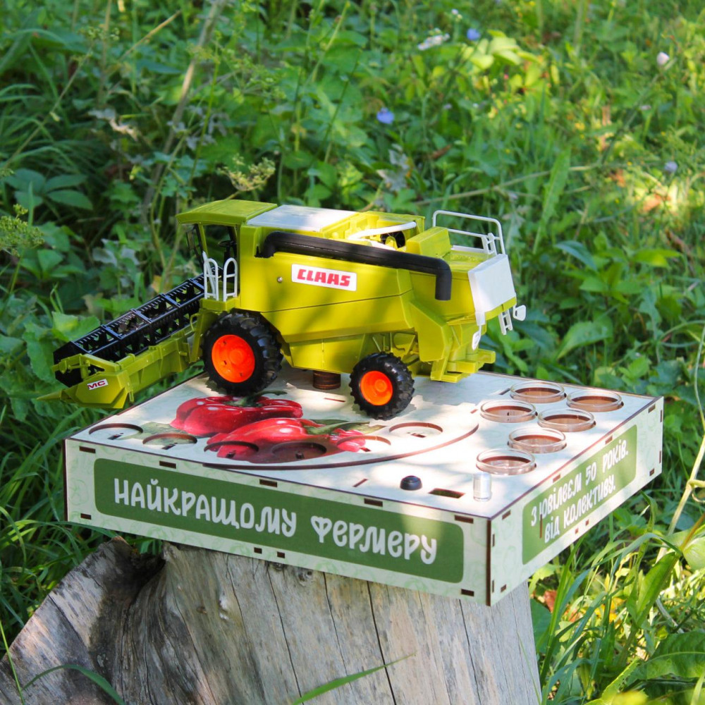 Наливатор у вигляді іграшки-комбайна - це функціональний механічний пристрій, призначений для дозування спиртного. Апарат здійснює розлив напою, кількість рідини, що наповнюватиме ємність, регулюється. Наливатор стане оригінальним подарунком для любителів ексклюзиву. Характеристики: Дизайн: Комбайн Кількість чарок: 6 Об'єм чарок: 50 мл Живлення: USB-кабель Матеріал: пластик, фанера, шланга харчова Функції: Регулювання об'єму напою Додатково можна придбати: Гравірування на чарках Повербанк 5000 мА / 10000 мА Вбудований акумулятор