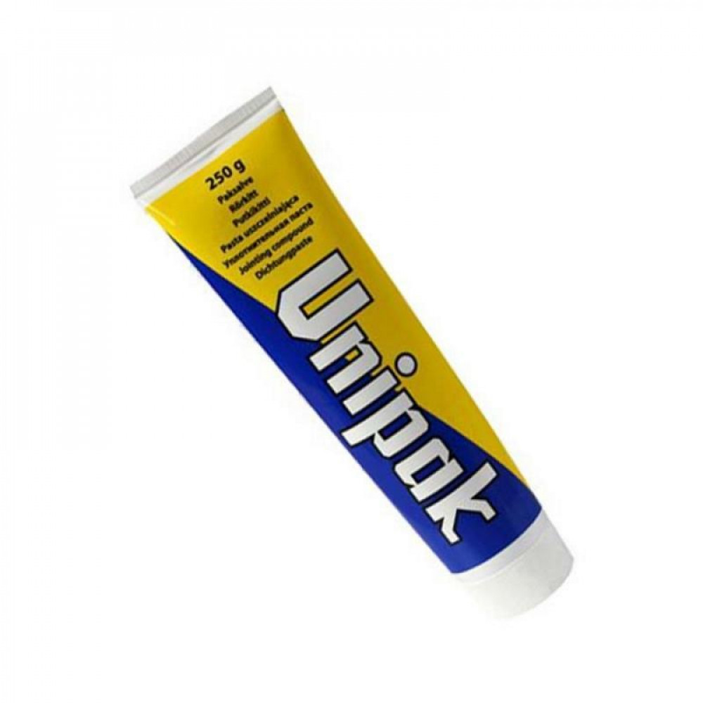 Unipak 250 г паста в тюбику - це високоефективний засіб для герметизації сантехнічних з'єднань. Великий обсяг тюбика забезпечує довготривале використання, а спеціальна формула гарантує надійну герметизацію та захист від протікання.