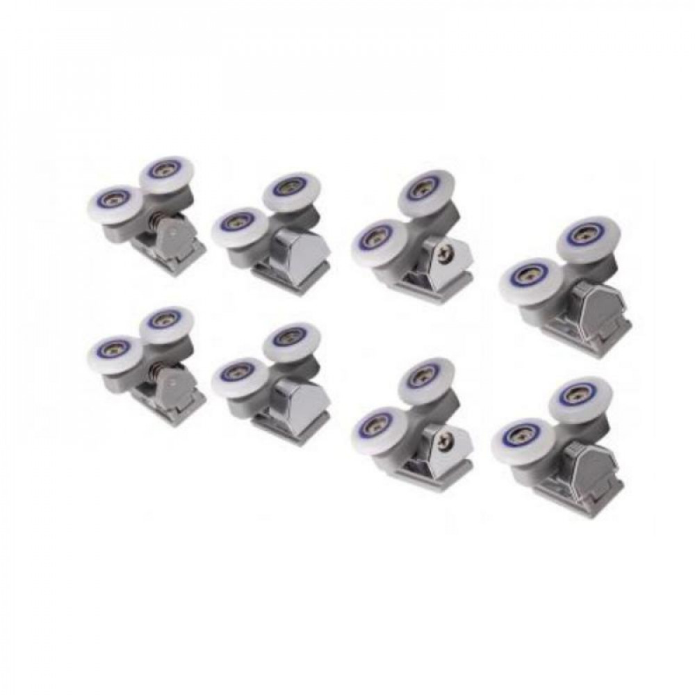 Надійний комплект подвійних роликів для душових кабін, призначений для тривалого використання, сумісний із різними моделями душових кабін. Забезпечує плавне ковзання дверей.