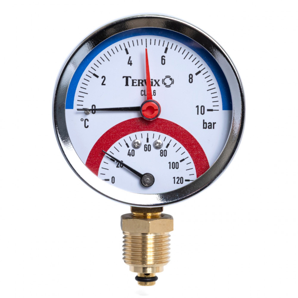 Описание: Термоманометр – это комбинированное устройство для измерения давления и температуры. Элемент измерения давления – трубка Бурдона, элемент измерения температуры – биметаллическая лента. Преимуществом этих приборов является использование одной точки подключения 1/2” BSP для одновременного измерения давления и температуры. Применение: Термоманометры используются в системах горячей воды и отопления, кондиционирования, вентиляции и охлаждения. Монтаж: В комплекте с термоманометром идет обтравочный (обратный) клапан, позволяющий производить замену термоманометра или производить его поверку/калибровку без остановки системы. 1. Отсоедините отсечной клапан от термоманометра. 2. Смонтируйте отсечный клапан в месте измерения температуры и давления. Резьба на отсечном клапане 1/2’’. Клапан можно монтировать прямо в трубопровод или специальное определенное для этого место. Внимание! Обеспечьте герметичную установку отсечного клапана. 3. Установите термоманометр в обтравочный клапан. 4. Фактические показания температуры теплоносителя в системе будут правильно отображаться после стабилизации температуры термоманометра. Это может занять от 5 до 30 мин. ]]>