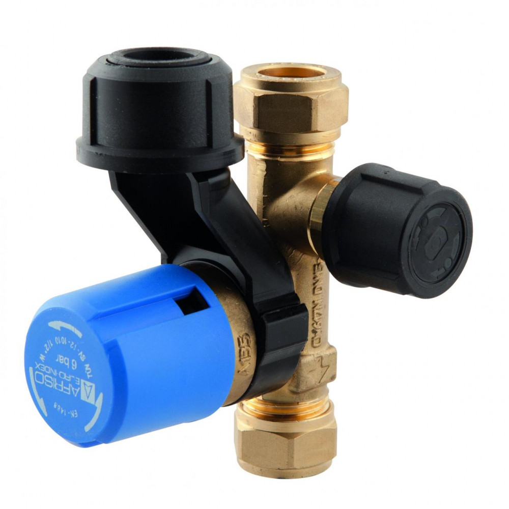 Состоит из латунного основания. Главной задачей такой группы безопасности является сброс избыточного давления, в случае образования такового в системе. Технические характеристики: Номинальная мощность: до 75 кВт Диаметер подключения: 1/2" Порог срабатывания: 10 бар Группа безопасности состоит из: Запорный клапан, встроенный обратный клапан, предохранительный клапан (10 бар) и поворотная воронка на 360º. Соединение – компрессионный фитинг 15 мм (двустороннее). ]]>