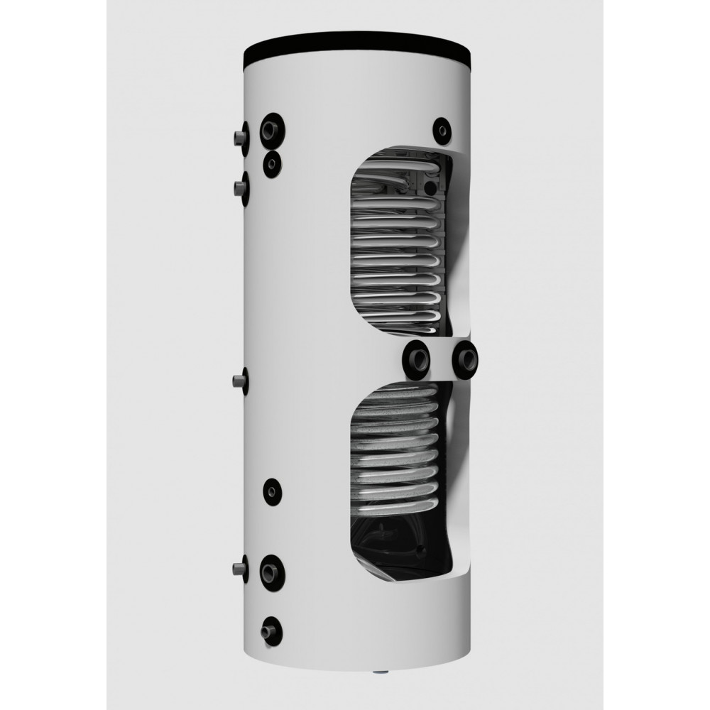 Стаціонарний акумулюючий бак для вертикальної установки Акумулюючі баки призначені для акумулювання надлишкової енергії в системі опалення, як і від котла на твердому паливі, так і від інших джерел, а також дозволяють нагрівати або підігрівати технічну воду у внутрішньому теплообміннику із нержавіючої сталі Електричний ТЕН – відсутній Наявний нержавіючий теплообмінник зі збільшеною поверхнею теплопередачі, через який відбувається проточний нагрів води, об’єм якого 20л Можливість додатково встановити нагрівальний елемент TJ 6/4'' Матеріал акумулюючого баку – сталевий Керування – відсутнє Поставляється з ізоляцією Neodul (60мм товщина)