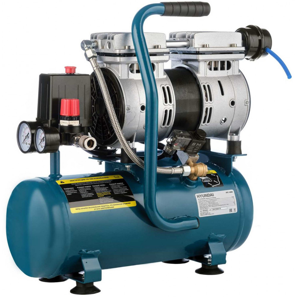 ОСНОВНОЕ НАЗНАЧЕНИЕ Безмасляный компрессор HYC 1406S используется для получения потока сжатого воздуха и предназначен для работ с легким пневматическим инструментом, с краскораспылителями, для очистки и продувки различных деталей и агрегатов. Если необходимо получить сжатый воздух повышенной чистоты без примесей смазки, используют безмасляные компрессоры. Здесь поршневые кольца изготовлены из особого полимерного материала и применяется графитовая смазка. На компрессоры HYUNDAI указаны реальные характеристики, позволяющие правильно подобрать модели для Ваших нужд. ПРИНЦИП РАБОТЫ Формирование сжатого воздуха происходит на его основном узле – компрессорной головке. Ее конструкция очень похожа на двигатель внутреннего сгорания – цилиндр, поршень, кольца поршневые, шатун, коленчатый вал, а также система впускных и нагнетательных клапанов, работающая от перепада давлений. ОСОБЕННОСТИ · Легкий, удобный в использовании при небольшом потреблении воздуха · Мощный электрический двигатель обеспечивает стабильную подачу воздуха при резких перепадах в нагрузке. · Медная обмотка двигателя выделяет меньше тепловой энергии и повышает срок использования компрессора. · Увеличены ребра кожуха охлаждения для лучшего теплоотвода · Дополнительно для защиты от критического перегрева в электродвигателе установлено надежное термореле. · Коленчатый вал для большей выносливости закаленный ковкой · Стальной бак (ресивер) изготовлен из высоколегированной стали – более устойчивой к коррозии. · В ресивере установлен предохранительный клапан высокого давления и дренажный клапан слива конденсата.