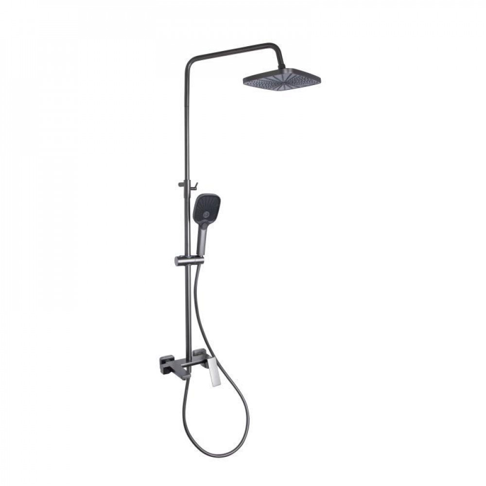 Змішувач, душова стійка, лійка для ручного душу, душовий шланг, кронштейн, деталі кріплення.