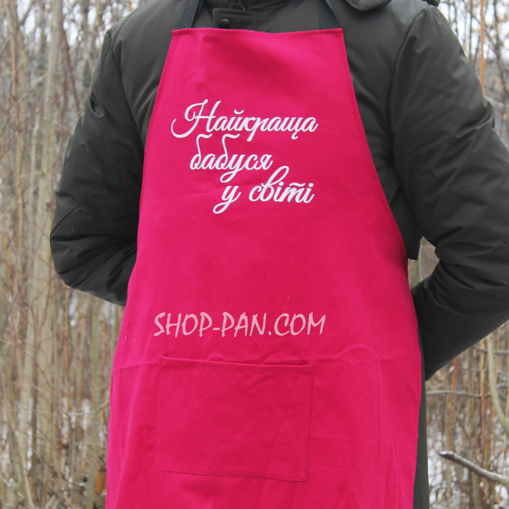 Фартук бордовый (саржа) с вашим принтом - У бабушки самые вкусные вареникиФартух с эксклюзивным принтом - это оригинальный подарок для друзей и близких! Стильный и качественный фартук с вашим принтом заказать недорого можно на нашем сайте в один клик или по телефону. Придумайте свой неповторимый логотип или надпись, или выберите готовый эскиз из нашего каталога! Изделия выполнены из качественной и прочной ткани, а принты мы наносим особым способом – они не выцветают и не деформируются при стирке. при необходимости мы упаковываем фартук в коробку из натурального дерева, на которой допустим индивидуальную гравировку. -цену уточняйте Оригинальный фартук с вашим принтом купить у нас можно всего за 320 гривен! ???? Shop-Pan – ваш прямой поставщик туристического снаряжения и эксклюзивных аксессуаров для дома и отдыха Предлагаем широкий ассортимент товаров для туризма, кемпинга, рыбалки и пикников – качественные изделия, проверенные временем и собранные с любовью к деталям. ???? Широкий ассортимент продукции В нашем каталоге представлены: ✅ Туристические сковороды, турбо-печки, котлы, коптильни, ножи, рыболовные сумки, фонари и многое другое ✅ Надежные товары для активного отдыха, дома и кухни – все для удобства и вдохновения. ✅ Решение для любого стиля жизни - от походов до домашнего уюта ✅ Сбалансированный выбор: эко-продукция из дерева, кухонные гравирующие доски, фартуки с вашим принтом, монастыри, мангалы, шампуры, часы и постеры ✅ Аксессуары с возможностью персонализации – сделайте свой подарок уникальным ✅ Качество, эстетика и забота в каждом изделии – без скрытых недостатков и компромиссов ???? Профессиональные консультации Менеджеры проконсультируют по выбору товаров. Работаем: Пн-Пт 10:00 – 18:00, Сб):00 – 16:00. Связь: Viber, Telegram, WhatsApp. ???? Быстрая доставка по Украине ???? Заказы, оформленные до 16:00, отправляются в тот же день. ???? Доставка популярнейшими службами Украины ???? Бонусы и скидки за отзывы! ???? ???? Оцените качество товара и ГАРАНТОВАНО получите скидку или бесплатную доставку на заказ! ???? Нам особенно ценные фото и видеовидуки. ???? Сообщите о своем отклике менеджеру в Telegram, WhatsApp или Viber (на выбор) — и гарантированно получите приятный бонус! ???? Найдите нас в Google - "Shop-Pan" и ознакомьтесь со _______________________________ Почему выбирают нас? ???? ✅ Качество, которому можно доверять Практические товары для дома, путешествий и активного отдыха ✅ Взвешенный подход,надежность и контроль качества на каждом этапе изготовления ???? От эксклюзивных сувениров до туристического снаряжения - все для ваших целей и подарков ✅ Заказ 24/7 - просто и быстро! ???? Наш сайт работает 24/7 ???? Менеджер ответит в мессенджерах в удобное для вас время. ✅ Быстрая доставка по Украине ???? Работаем по всей Украине! ???? Рассчитаем стоимость и подберем удобный способ оплаты. Получите посылку быстро и без хлопот. _______________________________ Как заказать? Простий алгоритм покупки: ✔ Оформите заказ через корзину или в мессенджерах ✔ Мы свяжемся с вами для уточнения деталей ✔ Отправим после оплаты или после платья ✔ Получите заказ в ближайшем отделении ???? "Shop-Pan" - Магазин, которому доверяют тысячи клиентов, которые ценят качество и оригинальность! ????Мы ценим каждого клиента и гарантируем отличный сервис и продукцию. ???? Сделайте заказ сейчас!