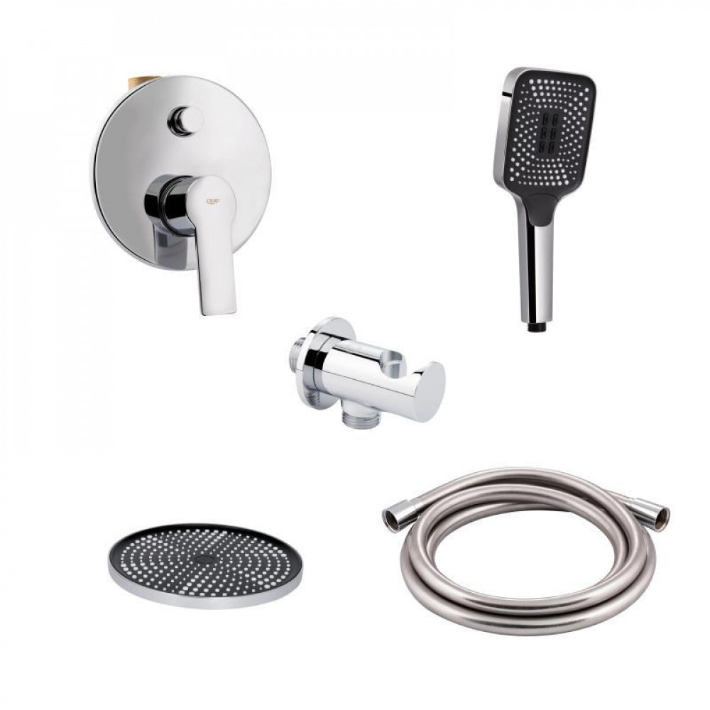 Змішувач (QTUST6216107ODC), лійка для ручного душу (QTRUC125CRM45954), лійка для верхнього душу (QTHLA107CRM45948), шланг (QTHADPVC200C), підключення (QTCRMBH030)