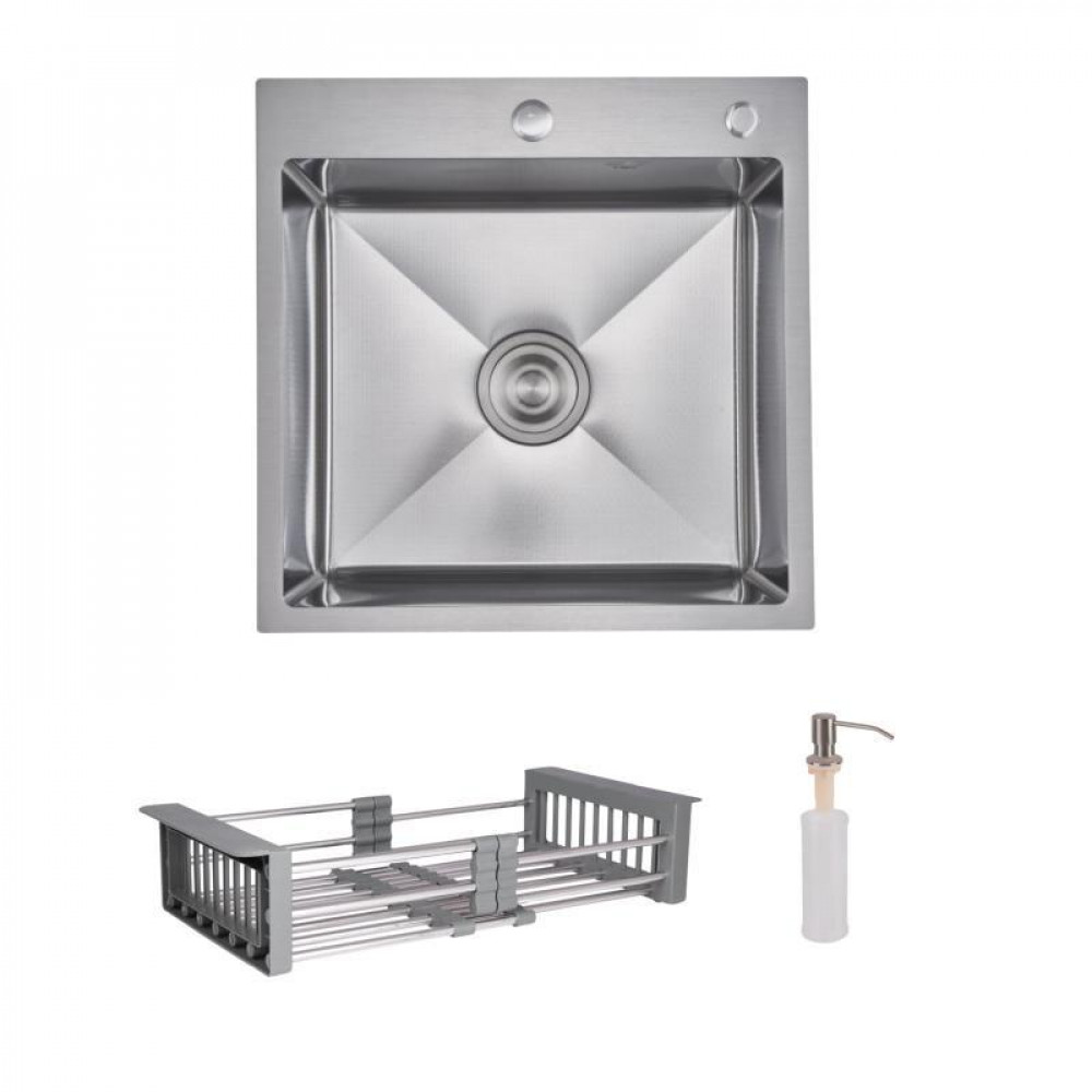 Интегрированная кухонная мойка с фактурной отделкой Honeycomb, выполненная из нержавеющей стали. В комплекте дозатор для моющего средства и корзина Lidz K01G для удобства пользования.