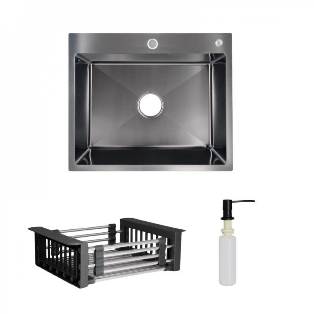 Комплект Lidz Handmade H6050B (BlackPVD) представляет черную интегрированную мойку с дозатором и корзиной Lidz K01B, создавая гармоничный ансамбль для вашей кухни.