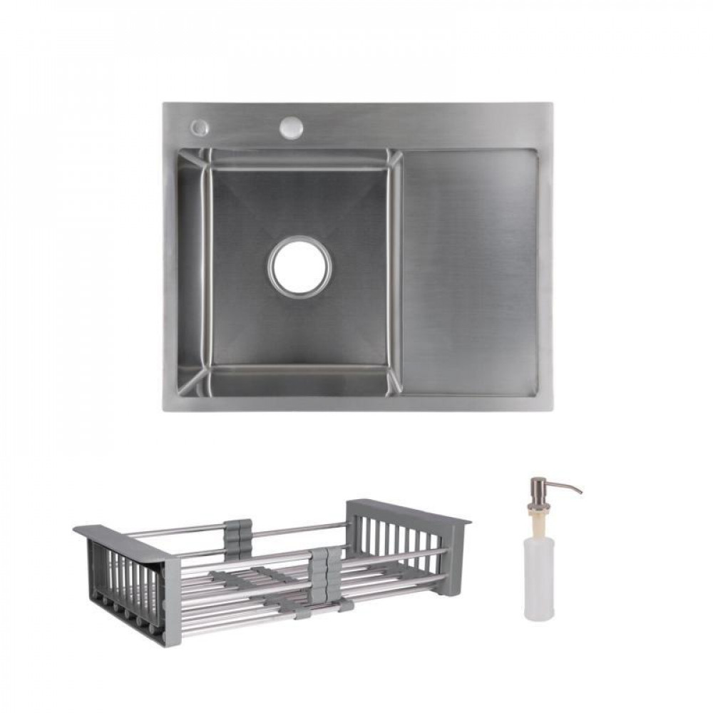 Комплект Lidz Handmade H6350R (Brushed) сочетает встроенную мойку с правым крылом и шлифованной поверхностью Brushed, а также дозатор и корзину Lidz K01G для максимального удобства.