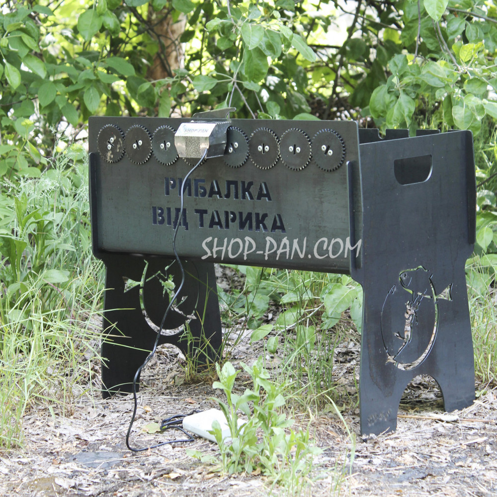 Мангал имый со встроенной шашлычницей и мотором на 8 шампуров — Рыбалка Имьянный мангал со встроенной шашлычницей недорогого Мангал со встроенной шашлычницей – находка для всех, кто любит отдыхать на природе и готовить шашлык, но не желает часами следить за процессом приготовления. Шашлычница обеспечивает равномерное прожаривание мяса, не позволяет ему подгореть. Наш мангал изготовлен из качественных материалов, которые служат долго, сохраняют правильную форму и привлекательный вид в процессе эксплуатации. Предлагаем именитые мангалы на 6, 8, 10 и 12 шампуров. Независимо от размера, товар производится из безопасной и прочной стали, выдерживающей высокие нагрузки, не выделяет вредных веществ при нагревании. Материал проходит тщательную обработка. Встроенная шашлычница с мотором работает от портативного зарядного устройства. Она медленно прокручивает шампура, благодаря чему мясо равномерно прожаривается со всех сторон, имеет аппетитную корочку, но не подгорает, остается сочным. Данное устройство позволяет отвлекать внимание от процесса приготовления. Вы можете общаться с друзьями и наслаждаться отдыхом на природе, пока мясо готовится. Компактность и мобильность. Мангал не занимает много места, его удобно возить с собой на природу. Качественные, прочные, долговечные материалы. Сталь выдерживает высокие нагрузки, служит многие годы. Лаконичный дизайн и индивидуальность. Сделать мангал уникальным можно с помощью именной гравировки. Шашлычница с мотором. Готовить мясо по шшличке, которая автоматически возвращает шампура, очень просто и удобно. ???? Shop-Pan – ваш прямой поставщик туристического снаряжения и эксклюзивных аксессуаров для дома и отдыха Предлагаем широкий ассортимент товаров для туризма, кемпинга, рыбалки и пикников – качественные изделия, проверенные временем и собранные с любовью к деталям. ???? Широкий ассортимент продукции В нашем каталоге представлены: ✅ Туристические сковороды, турбо-печки, котлы, коптильни, ножи, рыболовные сумки, фонари и многое другое ✅ Надежные товары для активного отдыха, дома и кухни – все для удобства и вдохновения. ✅ Решение для любого стиля жизни - от походов до домашнего уюта ✅ Сбалансированный выбор: эко-продукция из дерева, кухонные гравирующие доски, фартуки с вашим принтом, монастыри, мангалы, шампуры, часы и постеры ✅ Аксессуары с возможностью персонализации – сделайте свой подарок уникальным ✅ Качество, эстетика и забота в каждом изделии – без скрытых недостатков и компромиссов ???? Профессиональные консультации Менеджеры проконсультируют по выбору товаров. Работаем: Пн-Пт 10:00 – 18:00, Сб):00 – 16:00. Связь: Viber, Telegram, WhatsApp. ???? Быстрая доставка по Украине ???? Заказы, оформленные до 16:00, отправляются в тот же день. ???? Доставка популярнейшими службами Украины ???? Бонусы и скидки за отзывы! ???? ???? Оцените качество товара и ГАРАНТОВАНО получите скидку или бесплатную доставку на заказ! ???? Нам особенно ценные фото и видеовидуки. ???? Сообщите о своем отклике менеджеру в Telegram, WhatsApp или Viber (на выбор) — и гарантированно получите приятный бонус! ???? Найдите нас в Google - "Shop-Pan" и ознакомьтесь со _______________________________ Почему выбирают нас? ???? ✅ Качество, которому можно доверять Практические товары для дома, путешествий и активного отдыха ✅ Взвешенный подход,надежность и контроль качества на каждом этапе и