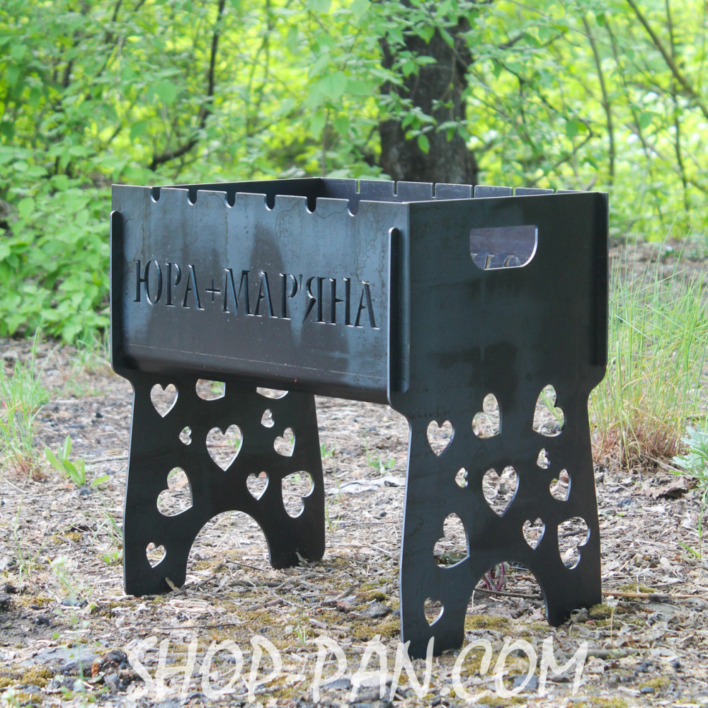 Мангал разборной с индивидуальной гравировкой - Юра+Марьяна - на подарок Manгал - отличный подарок любителям отдыха на свежем воздухе. А оригинальный именной мангал, изготовленный по индивидуальному заказу – это лучший способ поразить одного заботой и неординарным подходом к поиску подарков. Компактный мангал изготовлен из качественного металла, прослужить не одно десятилетие. Выигрывать на нем можно все что угодно: инициалы владельца, пожелания, мотивирующие фразы или шуточная подпись, которой оценит ваш близкий друг. Заказывайте именной мангал в коробке с гравировкой! Стоимость создания сложных изображений рассчитывается индивидуально. Большим удобством является то, что в разобранном виде мангал можно переносить в чехле в виде чемоданчика. Покупая подобное изделие наш клиент получает: · Высококачественный товар с бесконечным сроком использования. · Утяжелительный подход к созданию кожного изделия. · Разработка индивидуального дизайна мангала. · Отображение на стенках любых надписей, символов. · Конструкция вырезается из прочного толстостенного металла. · Сохраняет внешний вид и не деформируется. · Полностью разборный, занимает минимум места. ???? Shop-Pan – ваш прямой поставщик туристического снаряжения и эксклюзивных аксессуаров для дома и отдыха Предлагаем широкий ассортимент товаров для туризма, кемпинга, рыбалки и пикников – качественные изделия, проверенные временем и собранные с любовью к деталям. ???? Широкий ассортимент продукции В нашем каталоге представлены: ✅ Туристические сковороды, турбо-печки, котлы, коптильни, ножи, рыболовные сумки, фонари и многое другое ✅ Надежные товары для активного отдыха, дома и кухни – все для удобства и вдохновения. ✅ Решение для любого стиля жизни - от походов до домашнего уюта ✅ Сбалансированный выбор: эко-продукция из дерева, кухонные гравирующие доски, фартуки с вашим принтом, монастыри, мангалы, шампуры, часы и постеры ✅ Аксессуары с возможностью персонализации – сделайте свой подарок уникальным ✅ Качество, эстетика и забота в каждом изделии – без скрытых недостатков и компромиссов ???? Профессиональные консультации Менеджеры проконсультируют по выбору товаров. Работаем: Пн-Пт 10:00 – 18:00, Сб):00 – 16:00. Связь: Viber, Telegram, WhatsApp. ???? Быстрая доставка по Украине ???? Заказы, оформленные до 16:00, отправляются в тот же день. ???? Доставка популярнейшими службами Украины ???? Бонусы и скидки за отзывы! ???? ???? Оцените качество товара и ГАРАНТОВАНО получите скидку или бесплатную доставку на заказ! ???? Нам особенно ценные фото и видеовидуки. ???? Сообщите о своем отклике менеджеру в Telegram, WhatsApp или Viber (на выбор) - и гарантированно получите приятный бонус! ???? Найдите нас в Google - "Shop-Pan" и ознакомьтесь со _______________________________ Почему выбирают нас? ???? ✅ Качество, которому можно доверять Практические товары для дома, путешествий и активного отдыха ✅ Взвешенный подход,надежность и контроль качества на каждом этапе изготовления ???? От эксклюзивных сувениров до туристического снаряжения - все для ваших целей и подарков ✅ Заказ 24/7 - просто и быстро! ???? Наш сайт работает 24/7 ???? Менеджер ответит в мессенджерах в удобное для вас время. ✅ Быстрая доставка по Украине ???? Работаем по всей Украине! ???? Рассчитаем стоимость и подберем удобный способ оплаты. Получите посылку быстро и без хлопот. _______________________________ Как заказать? П