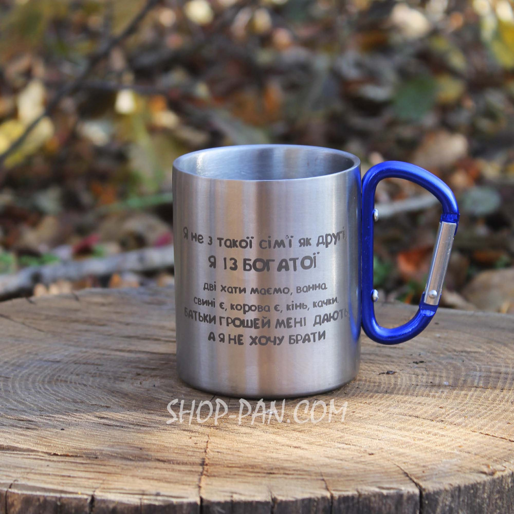 Металлическая чашка 250 мл с карабином и гравировки - я не из такой семьи как друзья я из богатой Предлагаем купить оригинальные кружки с карабином и разными надписями по выгодным ценам. Цвет карабина может отличаться! Наличие цвета уточняйте у менеджера. ???? Shop-Pan – ваш прямой поставщик туристического снаряжения и эксклюзивных аксессуаров для дома и отдыха Предлагаем широкий ассортимент товаров для туризма, кемпинга, рыбалки и пикников – качественные изделия, проверенные временем и собранные с любовью к деталям. ???? Широкий ассортимент продукции В нашем каталоге представлены: ✅ Туристические сковороды, турбо-печки, котлы, коптильни, ножи, рыболовные сумки, фонари и многое другое ✅ Надежные товары для активного отдыха, дома и кухни – все для удобства и вдохновения. ✅ Решение для любого стиля жизни - от походов до домашнего уюта ✅ Сбалансированный выбор: эко-продукция из дерева, кухонные гравирующие доски, фартуки с вашим принтом, монастыри, мангалы, шампуры, часы и постеры ✅ Аксессуары с возможностью персонализации – сделайте свой подарок уникальным ✅ Качество, эстетика и забота в каждом изделии – без скрытых недостатков и компромиссов ???? Профессиональные консультации Менеджеры проконсультируют по выбору товаров. Работаем: Пн-Пт 10:00 – 18:00, Сб):00 – 16:00. Связь: Viber, Telegram, WhatsApp. ???? Быстрая доставка по Украине ???? Заказы, оформленные до 16:00, отправляются в тот же день. ???? Доставка популярнейшими службами Украины ???? Бонусы и скидки за отзывы! ???? ???? Оцените качество товара и ГАРАНТОВАНО получите скидку или бесплатную доставку на заказ! ???? Нам особенно ценные фото и видеовидуки. ???? Сообщите о своем отклике менеджеру в Telegram, WhatsApp или Viber (на выбор) - и гарантированно получите приятный бонус! ???? Найдите нас в Google - "Shop-Pan" и ознакомьтесь со _______________________________ Почему выбирают нас? ???? ✅ Качество, которому можно доверять Практические товары для дома, путешествий и активного отдыха ✅ Взвешенный подход,надежность и контроль качества на каждом этапе изготовления ???? От эксклюзивных сувениров до туристического снаряжения - все для ваших целей и подарков ✅ Заказ 24/7 - просто и быстро! ???? Наш сайт работает 24/7 ???? Менеджер ответит в мессенджерах в удобное для вас время. ✅ Быстрая доставка по Украине ???? Работаем по всей Украине! ???? Рассчитаем стоимость и подберем удобный способ оплаты. Получите посылку быстро и без хлопот. _______________________________ Как заказать? Простий алгоритм покупки: ✔ Оформите заказ через корзину или в мессенджерах ✔ Мы свяжемся с вами для уточнения деталей ✔ Отправим после оплаты или после платья ✔ Получите заказ в ближайшем отделении ???? "Shop-Pan" - Магазин, которому доверяют тысячи клиентов, которые ценят качество и оригинальность! ????Мы ценим каждого клиента и гарантируем отличный сервис и продукцию. ???? Сделайте заказ сейчас!