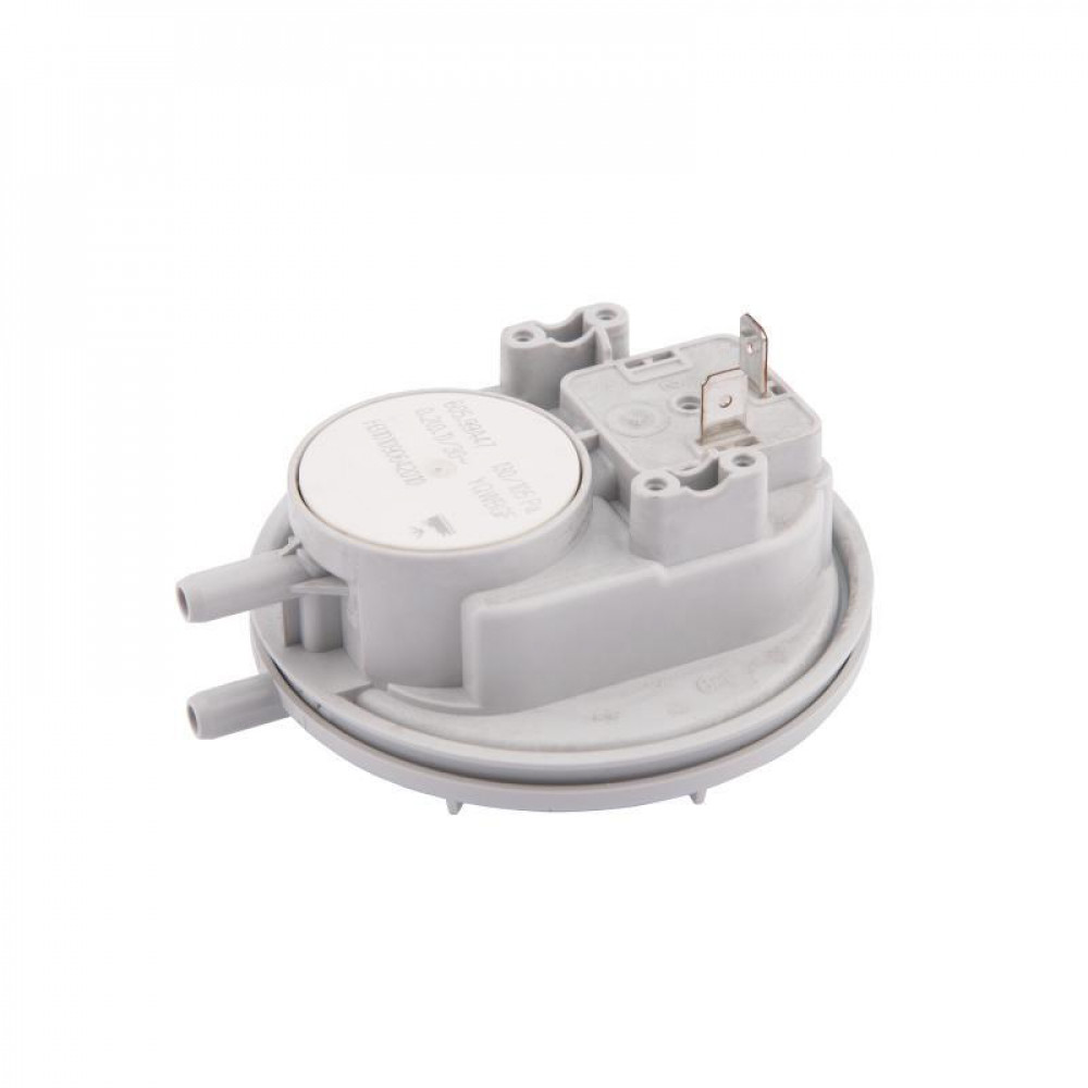 Прессостат 7021940024 (дифференциальное реле давления) является элементом безопасности в котле. Его основное предназначение – контроль удаления продуктов горения. Если забит дымоход, или неисправный вентилятор, то прессостат не замкнет контакты и котел не запустится, это предотвращает возможность отравления угарным газом. Прессстат Huba имеет диапазон работы 130/105 Па и применяется в газовых котлах Airfel 28 кВт.