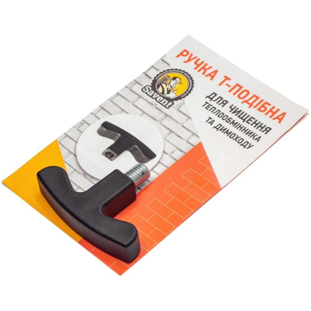 Ручка Т-подібна для чищення теплообмінника та димоходу Savent використовується разом із гнучкими ручками та щіткою, які мають різьбове з'єднання М12. Ручка виготовлена з міцного пластику. Завдяки зручній формі т-подібної ручки можна легко виконувати чищення як теплообмінника, так і димоходу.