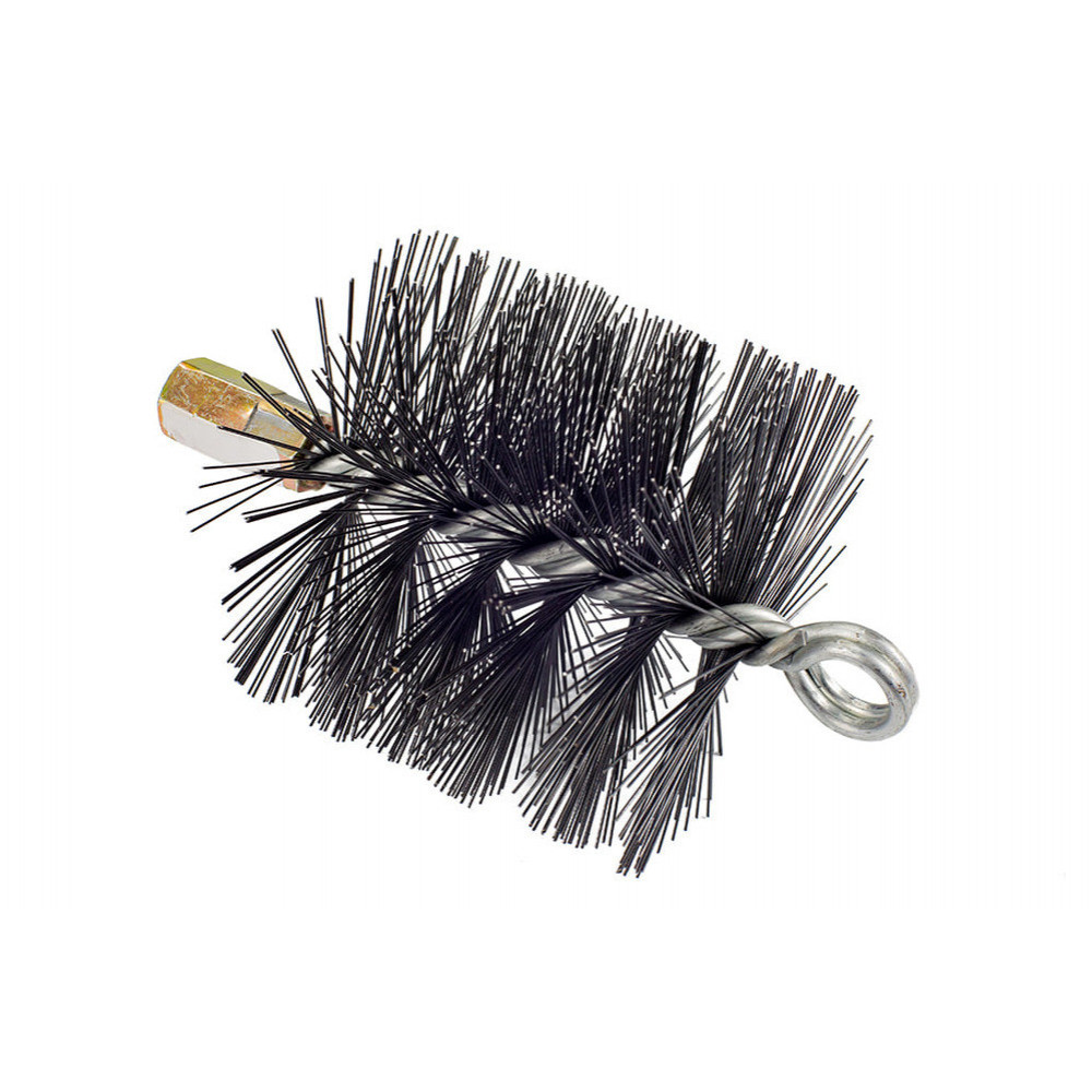 В ходе эксплуатации твердотопливных котлов, каминов и печей поверхность дымохода и камеры сгорания покрывается сажей, смолой и другими отложениями. Это приводит к уменьшению тяги и КПД отопительных приборов, воспламенению сажи и проникновению в помещение угарного газа. Периодическая проверка тяги, степени загрязненности и постоянная чистка дымохода поможет избежать возникновения вышеописанных проблем. Металлическая щетка для чистки дымохода Savent 110 мм с легкостью очистит стенки дымоходных труб от сажи, смол и других отложений. Изготовлена из высококачественной стали. Щетина щетки выполнена из пружинной проволоки закаленного в масле диаметром 0,55 мм, который защемлен между четырьмя оцинкированными прутами диаметром 3 мм. На одном конце щетка имеет резьбу М12, на другом – кольцо для крепления троса или веревки. Благодаря прочной и гибкой конструкции, с помощью металлической щетки можно быстро и качественно выполнить чистку любых дымовых каналов, за исключением дымоходов из нержавеющей стали. Чтобы избежать повреждения нержавеющего дымохода, рекомендуем проводить чистку таких видов дымоходов пластиковой щеткой.