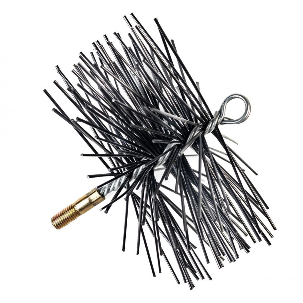 Під час експлуатації твердопаливних котлів, камінів і печей на стінках димоходу та камери згоряння поступово накопичуються сажа, смола та інші відкладення. Такі забруднення знижують тягу, ефективність роботи опалювальних приладів, можуть спричинити займання сажі або потрапляння чадного газу в приміщення. Регулярна перевірка тяги, ступеня забруднення та своєчасне очищення димоходу допоможуть уникнути цих небезпечних ситуацій. Щітка пластикова Ecodym 250 мм призначена для ефективного очищення внутрішніх стінок димохідних труб від сажі, смоли та інших відкладень. Підходить для чищення димоходів будь-якого типу — як цегляних, так і з нержавіючої сталі. Щітка виготовлена з високоякісного пластику, ворс має овальний перетин 1,8 х 2,4 мм, який затиснутий між чотирма оцинкованими прутами діаметром 3 мм. На одному кінці щітка має різьбу М12, на іншому – кільце для кріплення троса або мотузки. Щітка може використовуватися як із гнучкими ручками, так і у варіанті з гирею.