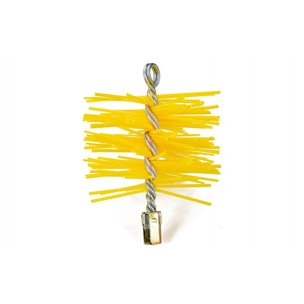 Опалювальні прилади, що працюють на твердому паливі, потребують регулярного очищення димоходу і теплообмінника. В ході експлуатації котла, каміна або печі, в трубі збирається сажа, смола, а також інші продукти згорання палива. Це заважає правильній роботі приладу, виникає небезпека загорання димоходу та отруєння чадним газом. Щоб попередити утворення сажі, смоли та інших відкладень в димоходах і опалювальних приладах, скористайтеся засобами для механічного чищення торгової марки «Savent». Пластикова щітка для чищення димоходу Savent 130 мм легко очистить димохід від сажі, смол і відкладень. Виготовлена з високоякісного пластику, ворс щітки має овальний перетин розміром 1,8 х 2,9 мм, який затиснутий між чотирма оцинкованими прутами діаметром 3,8 мм. Це надає щітці додаткову жорсткість і покращує її ефективність при чищенні будь-яких відкладень на стінках димоходів. Щітка призначена для чищення будь-яких типів димоходів як цегляних, так і з нержавіючої сталі. На одному кінці щітка має різьбу М12, на іншому – кільце для кріплення троса або мотузки. Підходить для чищення за допомогою гнучких ручок, так і у варіанті з гирею. Щітки з пластиковим ворсом рекомендовані виробниками димоходів з нержавіючої сталі.