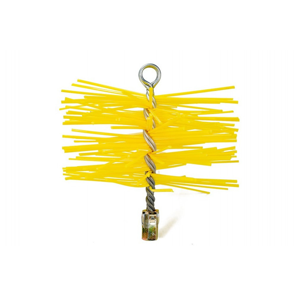 Опалювальні прилади, що працюють на твердому паливі, потребують регулярного очищення димоходу і теплообмінника. В ході експлуатації котла, каміна або печі, в трубі збирається сажа, смола, а також інші продукти згорання палива. Це заважає правильній роботі приладу, виникає небезпека загорання димоходу та отруєння чадним газом. Щоб попередити утворення сажі, смоли та інших відкладень в димоходах і опалювальних приладах, скористайтеся засобами для механічного чищення торгової марки «Savent». Пластикова щітка для чищення димоходу Savent 200 мм легко очистить димохід від сажі, смол і відкладень. Виготовлена з високоякісного пластику, ворс щітки має овальний перетин розміром 1,8 х 2,9 мм, який затиснутий між чотирма оцинкованими прутами діаметром 3,8 мм. Це надає щітці додаткову жорсткість і покращує її ефективність при чищенні будь-яких відкладень на стінках димоходів. Щітка призначена для чищення будь-яких типів димоходів як цегляних, так і з нержавіючої сталі. На одному кінці щітка має різьбу М12, на іншому – кільце для кріплення троса або мотузки. Підходить для чищення за допомогою гнучких ручок, так і у варіанті з гирею. Щітки з пластиковим ворсом рекомендовані виробниками димоходів з нержавіючої сталі.
