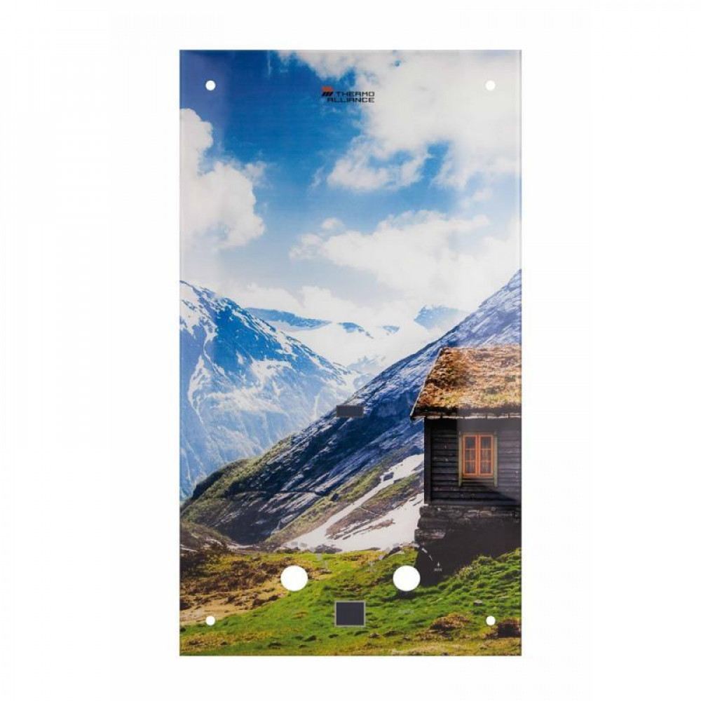 Скляна панель для газових колонок Thermo Alliance (30130102200129) виконана з малюнком гір. Ручки, дисплей, болти кріплення в комплект не входять.