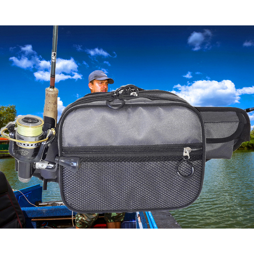 Сумка спінінгіста поясна + плече, посилена, непромокальна для риболовліУніверсальна поясна сумка з тримачем вудлища. Має два основні відділення, одне з яких тверде. Перше відділення працює як відкидний столик, на пластиковій основі. Крім того, переднє відділення обладнане знімною панеллю з м'якого матеріалу, призначеного для зберігання приманок під час риболовлі, кріпиться за допомогою гумки. Саму сумку можливо носити як на плечі, так і на поясі. Сам пояс у сумці знімний, плюс пришита ручка для зручного перенесення. Тканина сумкова Оксфорд 1680Д на ПВХ основі, щільність 500 (г/м2) Дуже щільна та міцна тканина. Розміри 24-18-12.