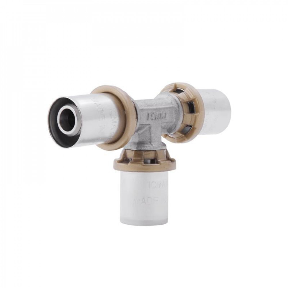 Прес-фітинг трійник Sempiter призначений для металопластикової труби для монтажу з радіальним пресуванням. Застосовується в системах водопостачання, опалення, і охолодження. Окремий прес на кожен діаметр труби стискає гільзу з нержавіючої сталі, яка надійно фіксує трубу на фітингу. Механічне з'єднання забезпечує спеціальний профіль фітинга і гільзи з нержавіючої сталі, які були розроблені спеціально для того, щоб пресування відбувалося трьома різними профілями.