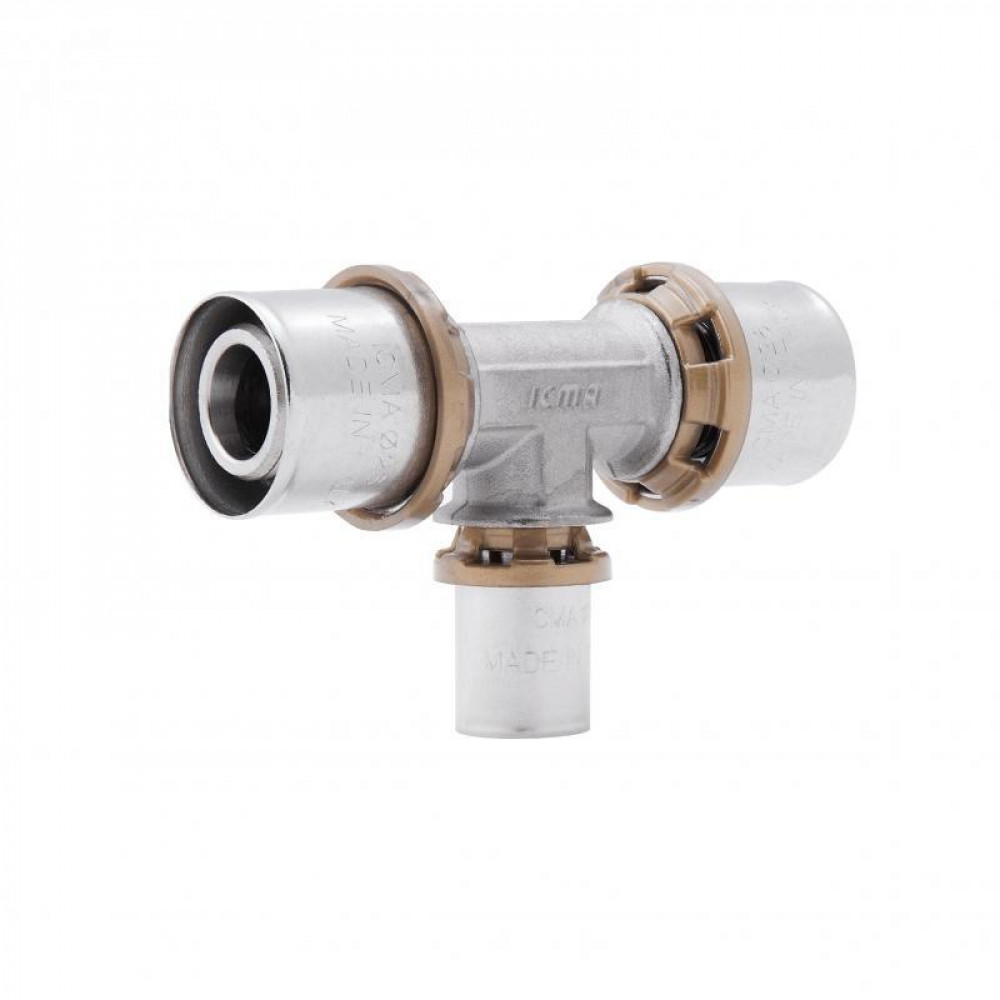 Прес-фітинг трійник Sempiter призначений для металопластикової труби для монтажу з радіальним пресуванням. Застосовується в системах водопостачання, опалення, і охолодження. Окремий прес на кожен діаметр труби стискає гільзу з нержавіючої сталі, яка надійно фіксує трубу на фітингу. Механічне з'єднання забезпечує спеціальний профіль фітинга і гільзи з нержавіючої сталі, які були розроблені спеціально для того, щоб пресування відбувалося трьома різними профілями.