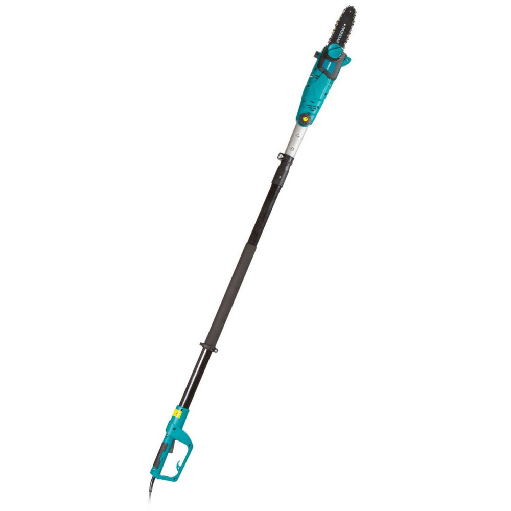 Опис Електричний садовий висоторіз Hyundai HPSE 750R призначений для обрізання гілок дерев в місцях, де використання більш зручного інструменту є неможливим. Висоторізи Hyundai були розроблені та виготовлені з урахуванням складних вимог використання в домогосподарствах України – посилений мережевий кабель для надійної роботи, прорезинена ручка для впевненого тримання приладу та редуктор, виготовлений з алюмінієвого сплаву для захисту від випадкових ударів приладу гілками, що обрізуються. Кнопка вимикача висоторізу складається з двох частин, що унеможливлює випадковий запуск пристрою. Для зручності використання телескопічна штанга витягується до максимальної довжини в 260 см та оснащена подовженою, пом’якшеною, поліпропіленовою накладкою, довжиною 42 см, що дозволяє зручно тримати прилад в залежності від фізіологічних особливостей оператора. Корпус телескопічної штанги виготовлено з армованого поліматеріалу з текстолітовою основою, що одночасно є легким та ударостійким матеріалом та значно подовжує термін служби всього виробу. Пилка висоторізу має можливість регулювання відносно телескопічної штанги в 5-ти позиціях від 0° до 30° з кроком регулювання 7,5°, що дозволяє комфортно розташувати висоторіз по відношенню до місця його застосування. На корпусі пилки висоторізу встановлено упор для комфортного розпилювання гілок, зверху розташовано заливну горловину в бак для змащення ланцюга пилки об’ємом 60 мл. Ліворуч на корпусі розташоване оглядове вікно баку для змащення ланцюга. Праворуч, біля ланцюга – система швидкого натягування ланцюга, що значно полегшує технічне обслуговування та налаштування пилки. Ефективна робоча зона ланцюга складає 17 см, що дозволяє працювати з гілками діаметром до 15 см, а фірмовий ланцюг та шина Hyundai роблять цю роботою легкою та цікавою.
