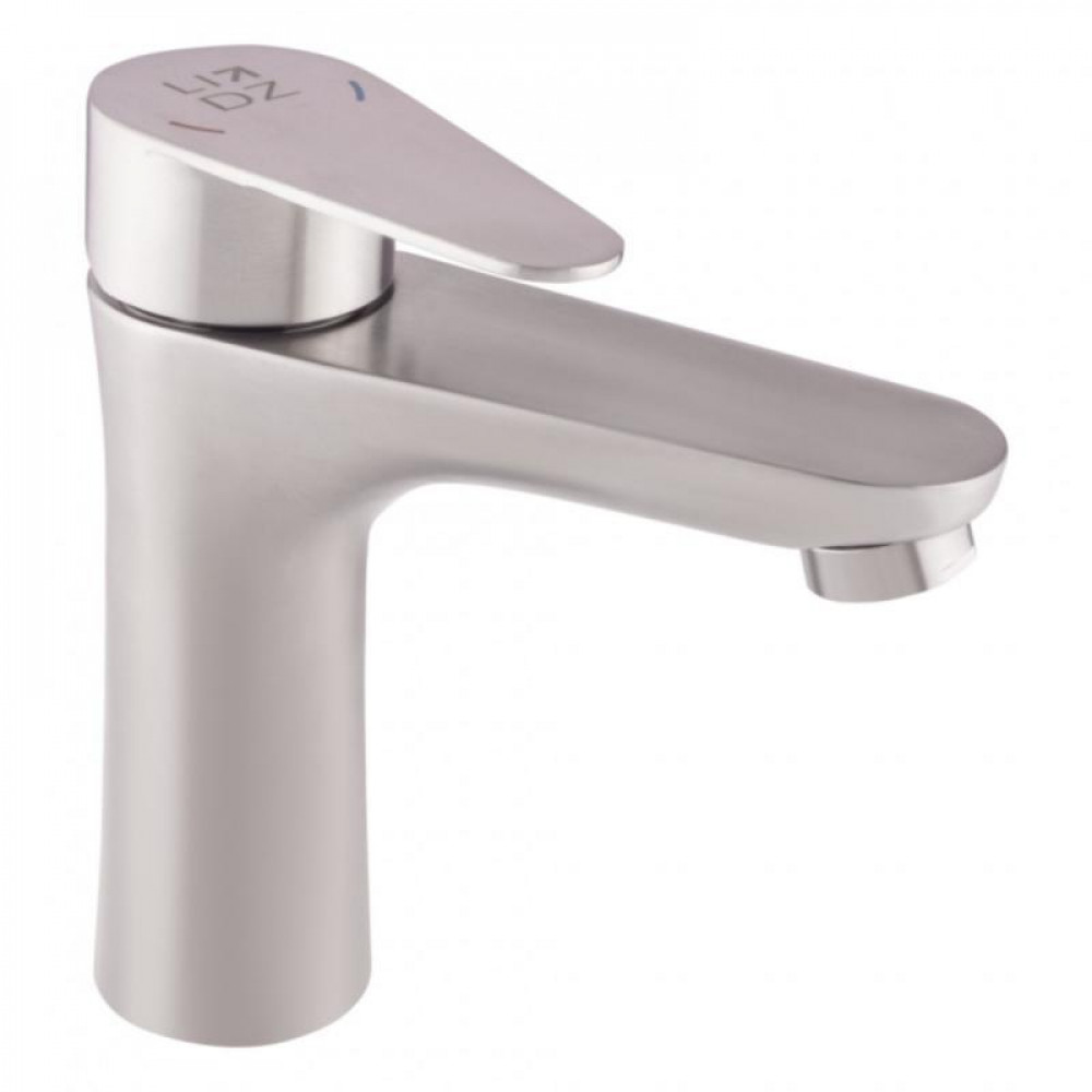 Змішувач для раковини Lidz (NKS) 09 35 001F виконано з нержавіючої сталі. Він монтується в отвір для змішувача на раковині або на стільниці врізним способом. Напір води і її температура регулюються поворотом важеля в необхідне положення. Важіль має нанесені маркування Х + Г води і фірмовий логотип виробника.