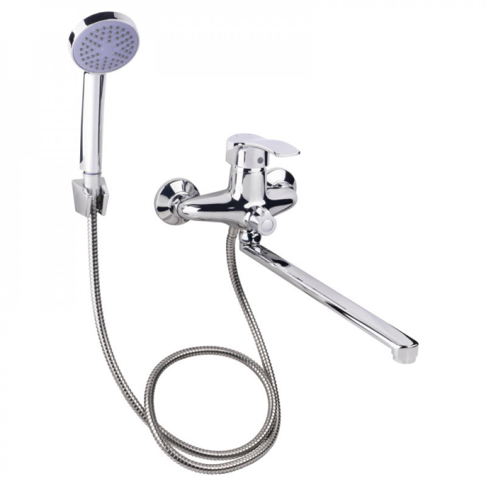 Змішувач для ванни Lidz (CRM) 41 86 005B-1 New з довгим поворотним виливом виготовлено з цинку, укомплектовано кронштейном для ручного душу, душових шлангом і лійкою. Завдяки хромованому покриттю має міцну поверхню і привабливий зовнішній вигляд. Декоративні розетки приховають похибки установки на оздобленні кімнати. Напір води і її температура регулюються поворотом важеля в необхідне положення. Перемикання ванна/душ здійснюється за допомогою дивертора.